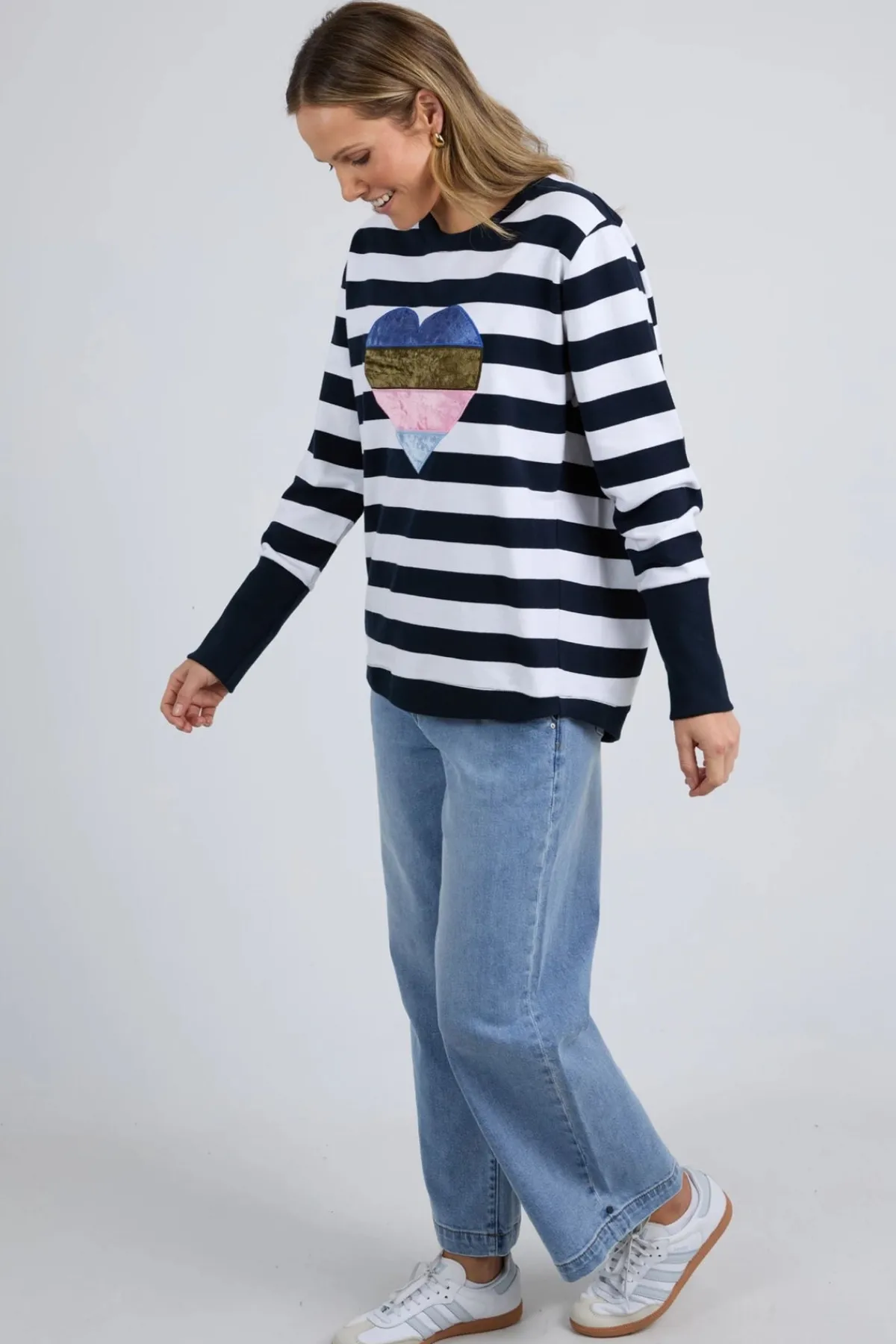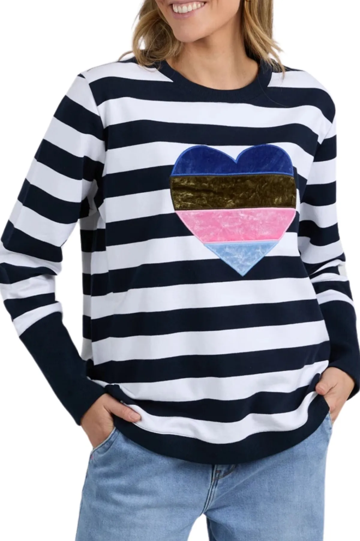 Featuring a velvet heart applique on the front, what’s not to love about this classic fun Elm Crew. All heart, all style – theElm Liner Heart Crewin Navy and White Stripe is an instant wardrobe favourite!