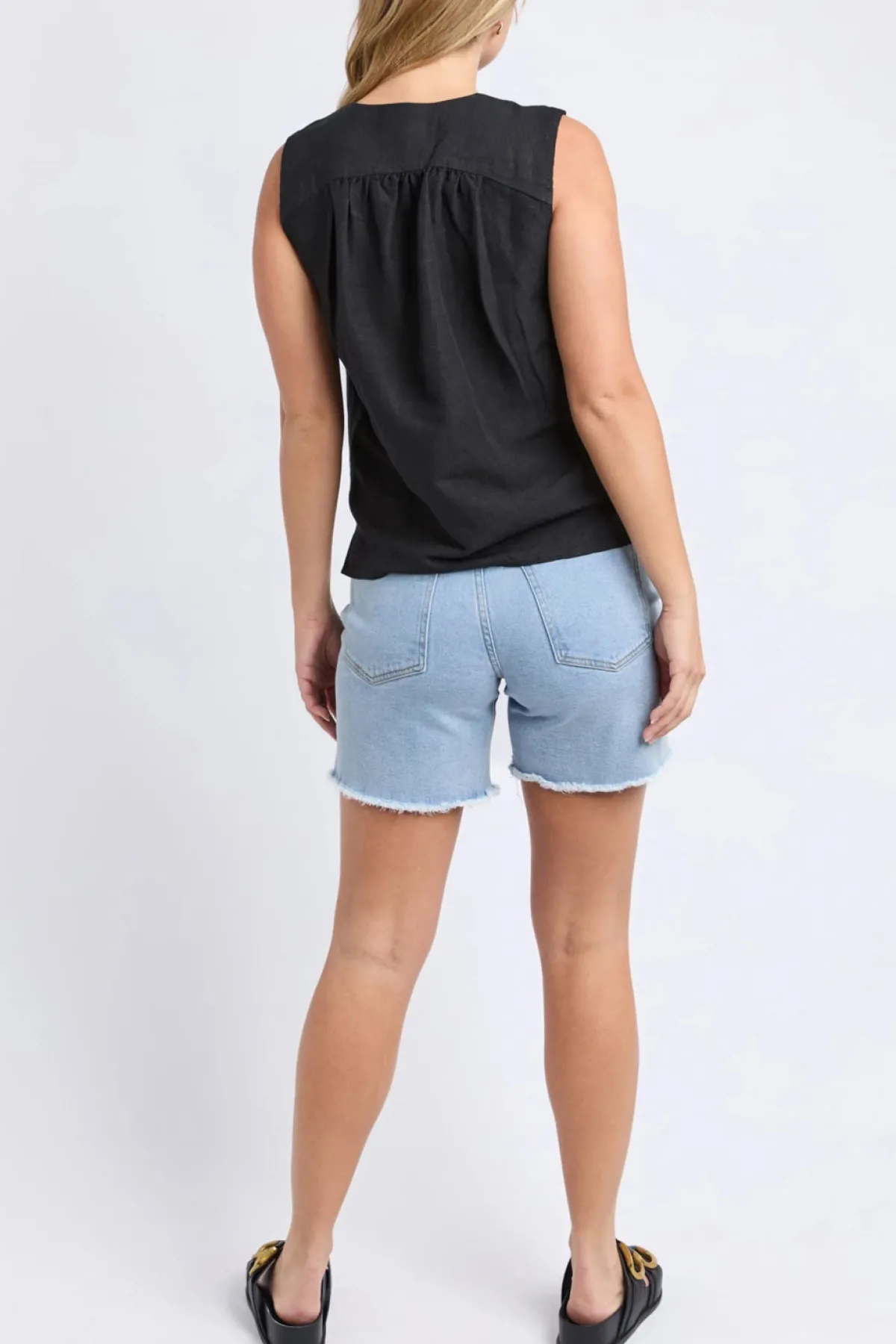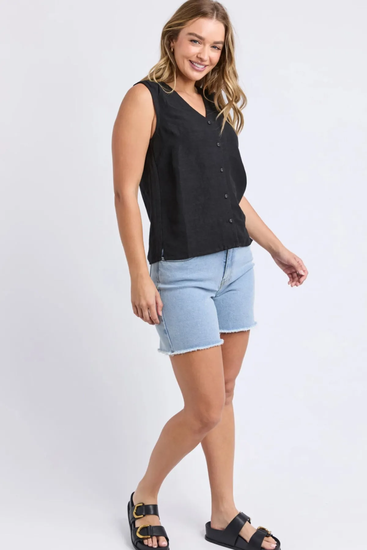 The Anara Top is your new sunny day favourite with its button front, sleeveless shape and relaxed vibe. Breezy and fun to wear, it is the perfect throw on for jeans, skirts or shorts.