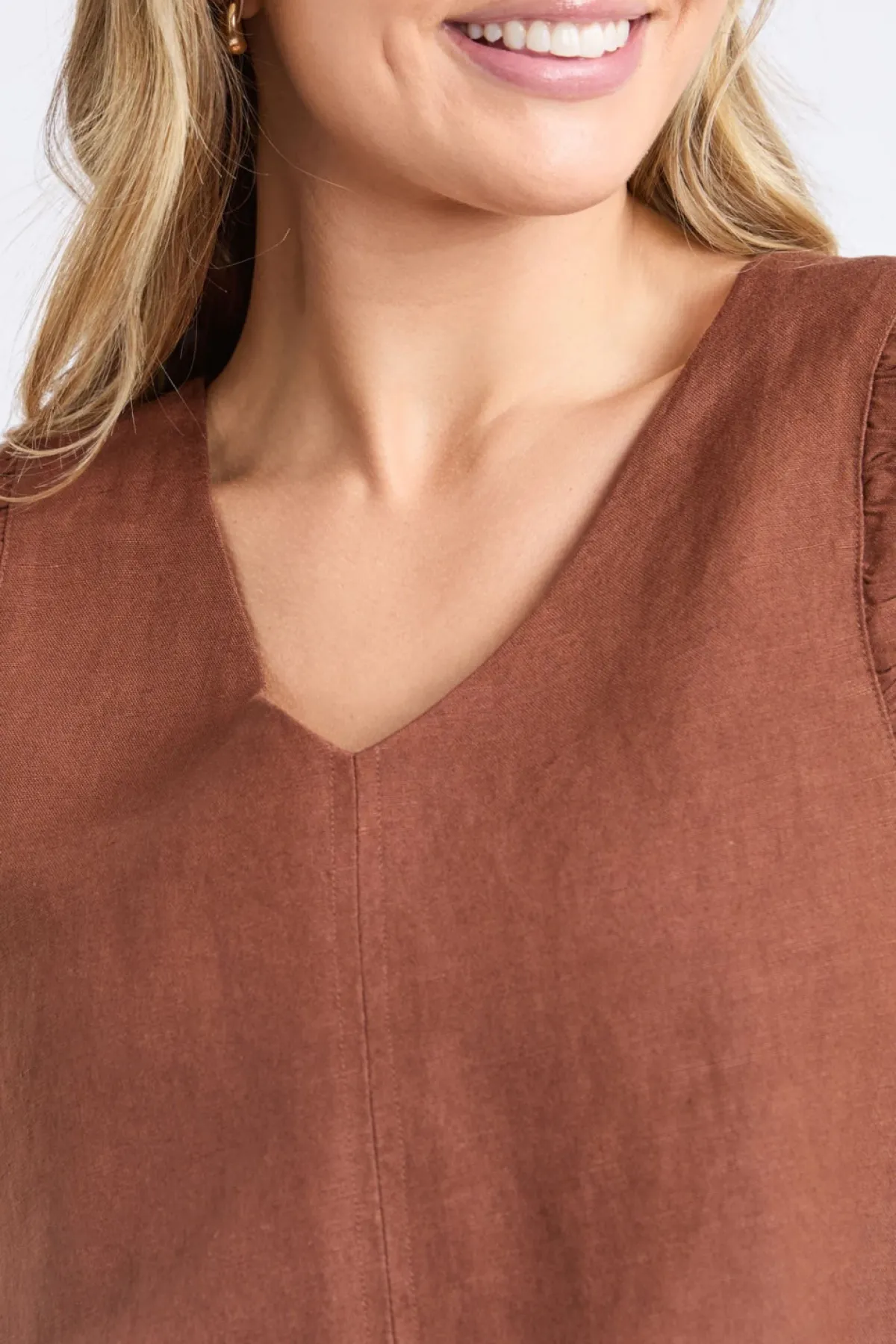 The Bermuda Top is all about relaxed summer vibes. With its linen blend feel, playful frill detail and clean V-neckline, it is a style that looks just as good dressed up as it does casual.
