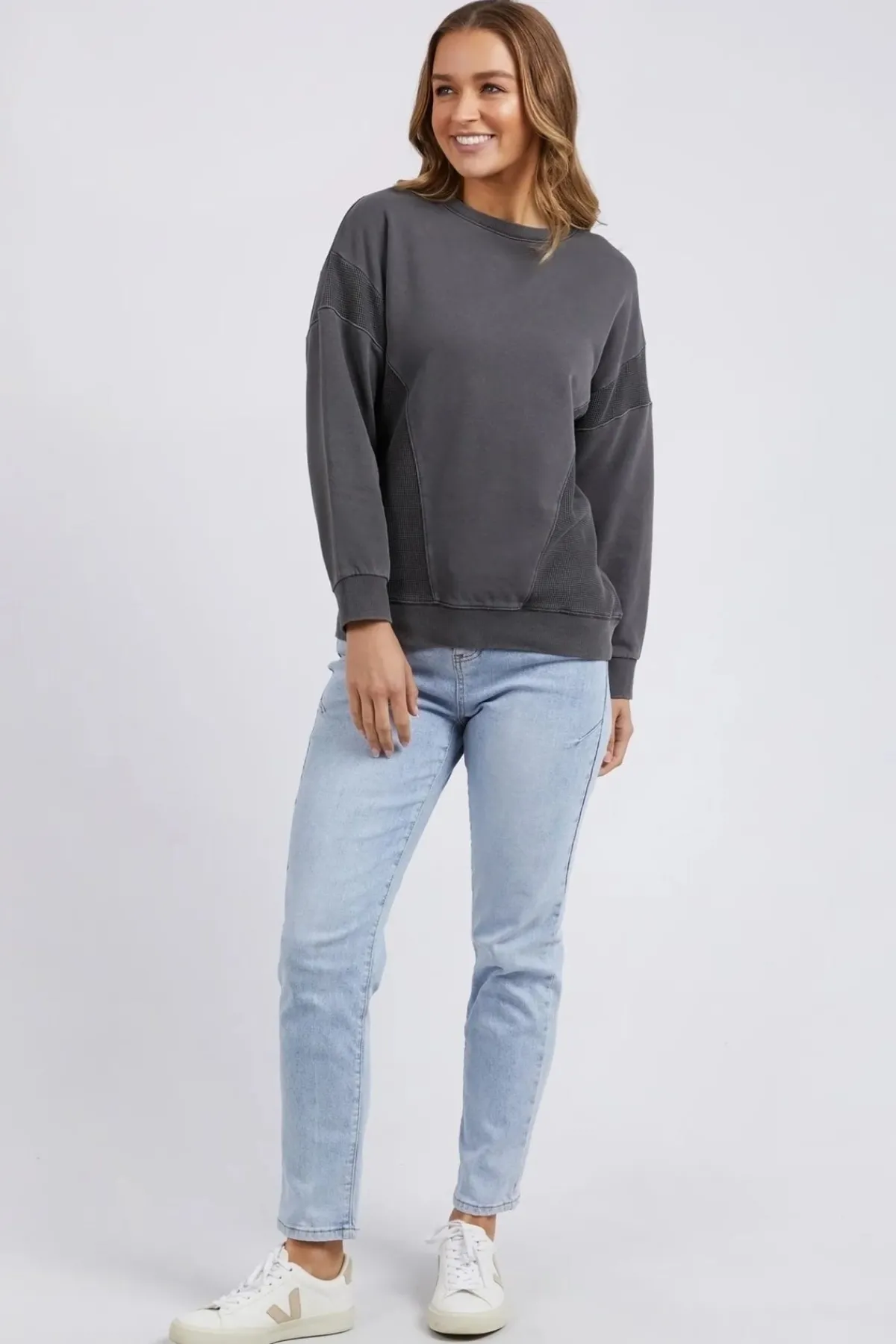 With distinct textured details and a relaxed fit, this sweatshirt will elevate any look, whether you’re out running errands or hanging out with friends. Made from stretch jersey fabric with a classic crew neck and ribbed cuffs, this 100% cotton sweatshirt is also easy to care for with machine washing.