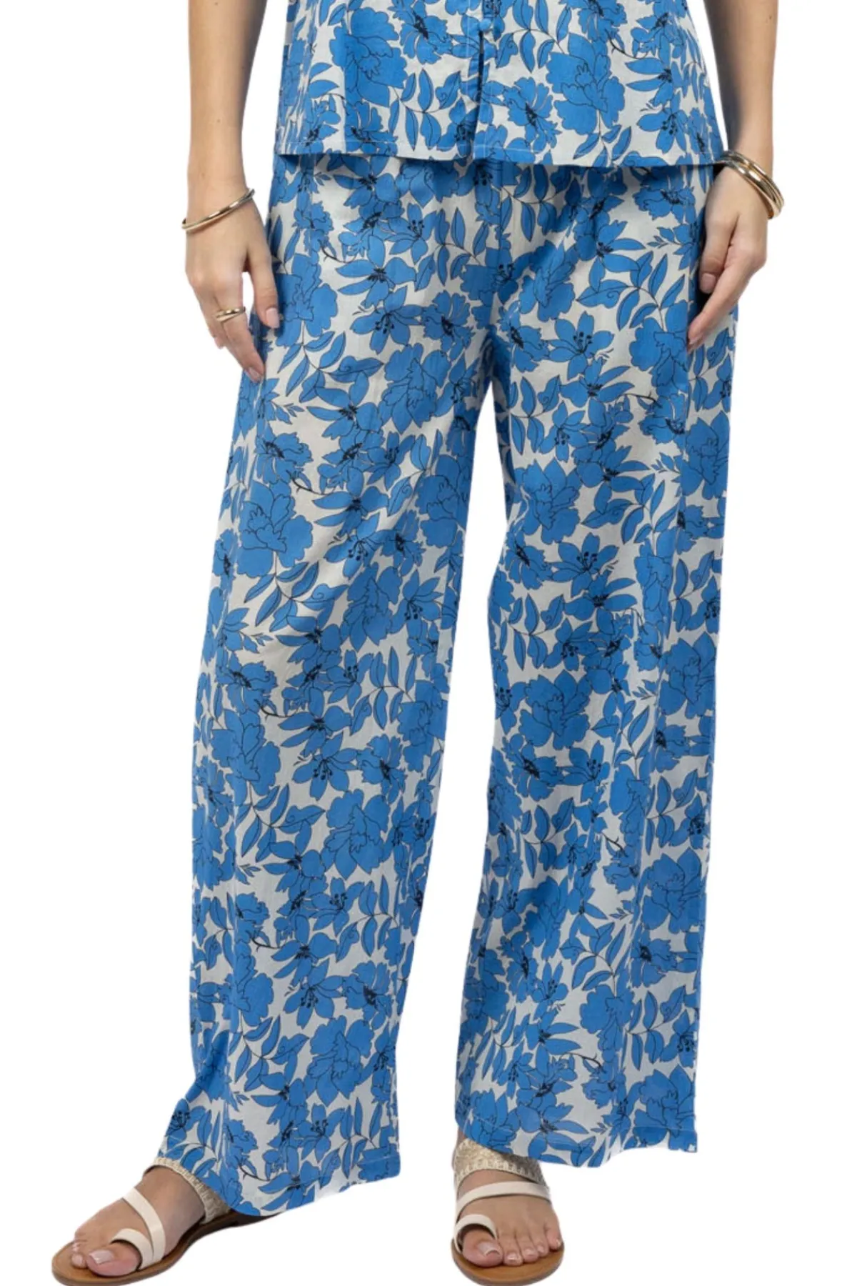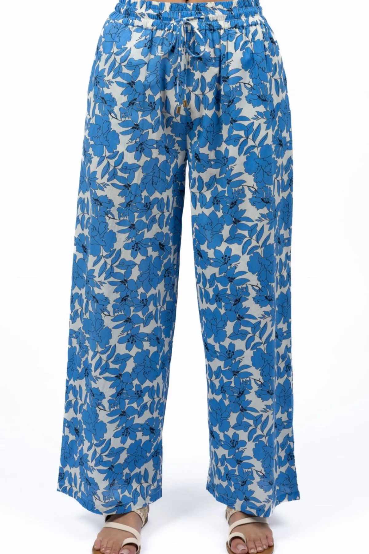 - Relaxed, wide leg pants in Humidity’s exclusive fleur print.