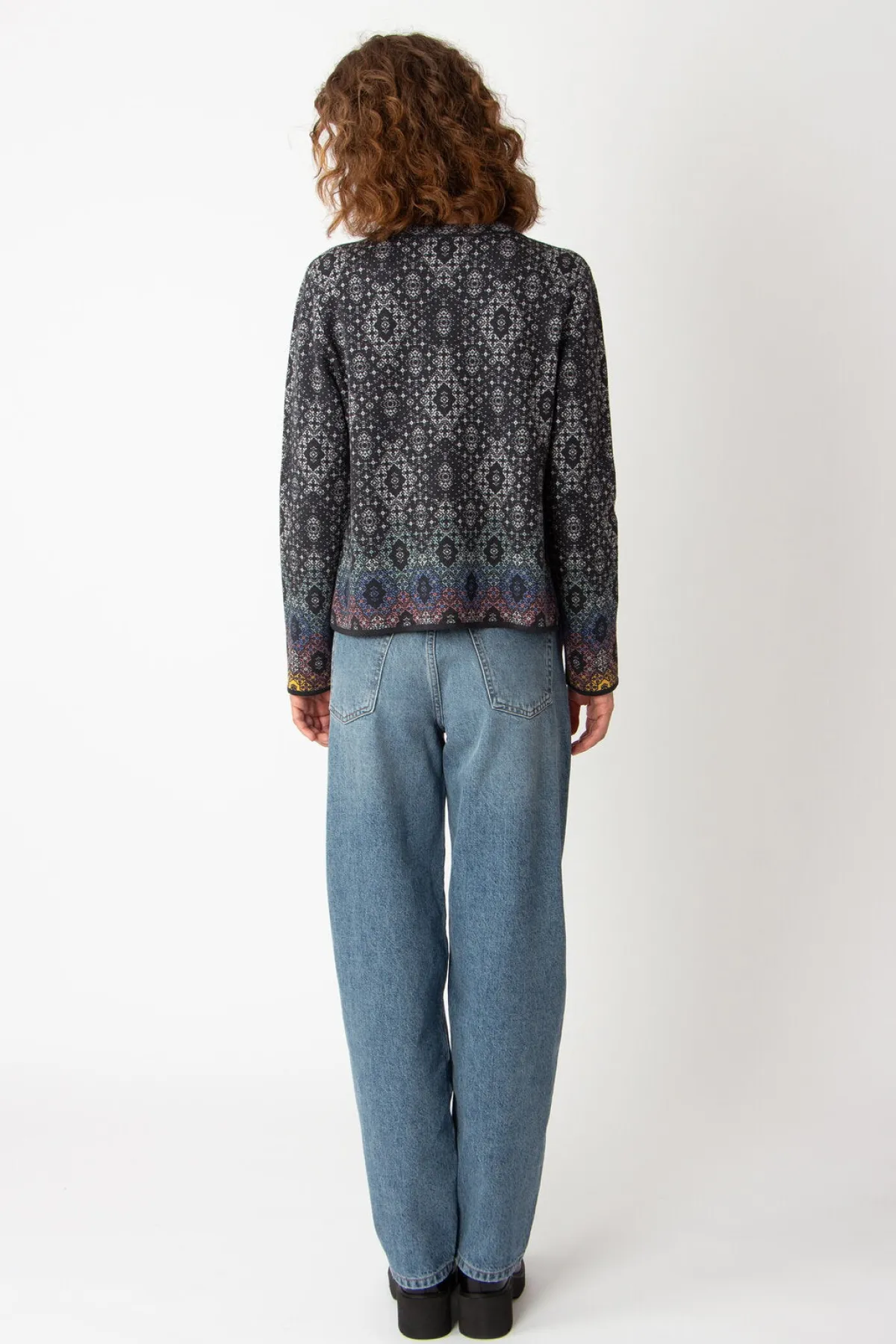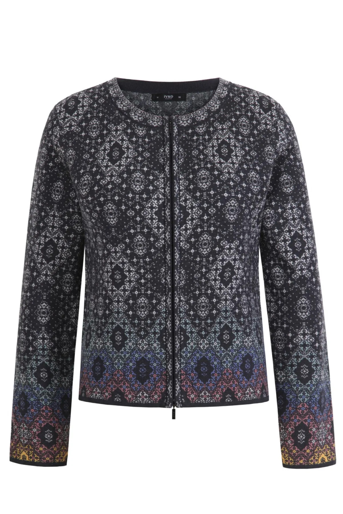 Cardigan crafted from 100% wool, featuring a round neckline, standard fit, front zipper, and an ornament pattern.