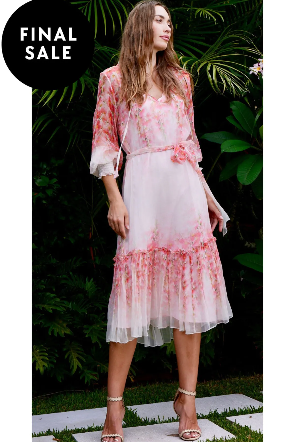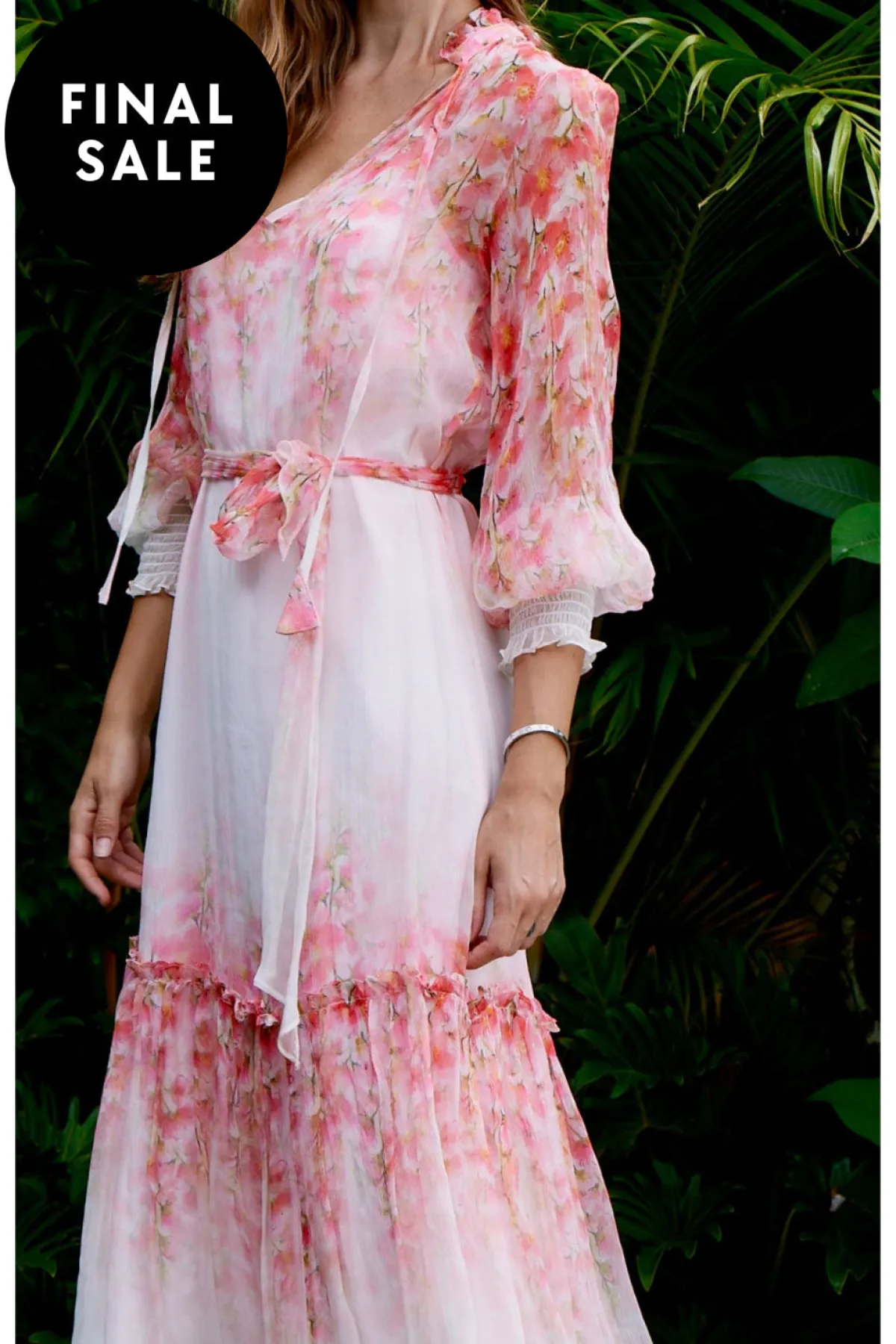 The beautiful Mia dress is so special and pretty. The gorgeous full sleeve is finished with a shirred cuff, and the tiny frills at the neckline are just a few of the divine details. This dress is straight through and can be tied at the waist with the self belt or worn without. It comes with a silk touch slip.