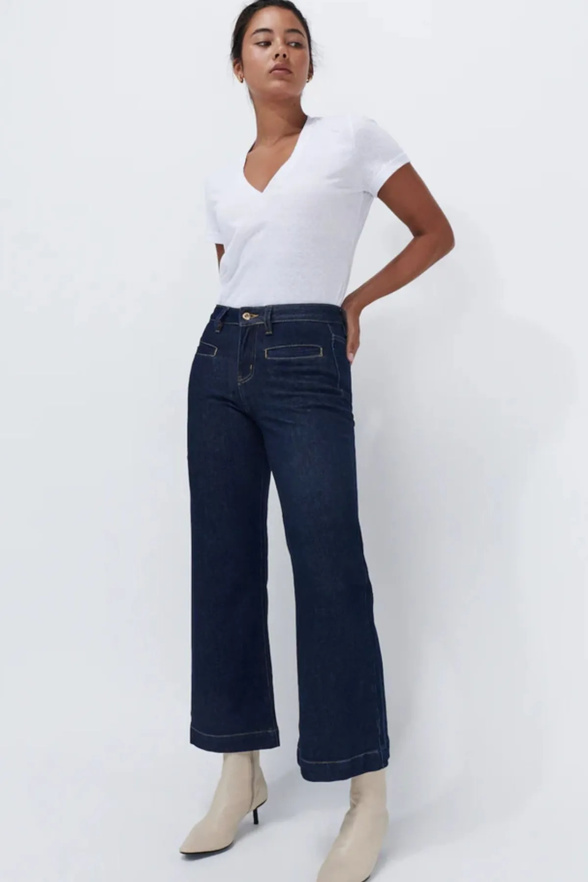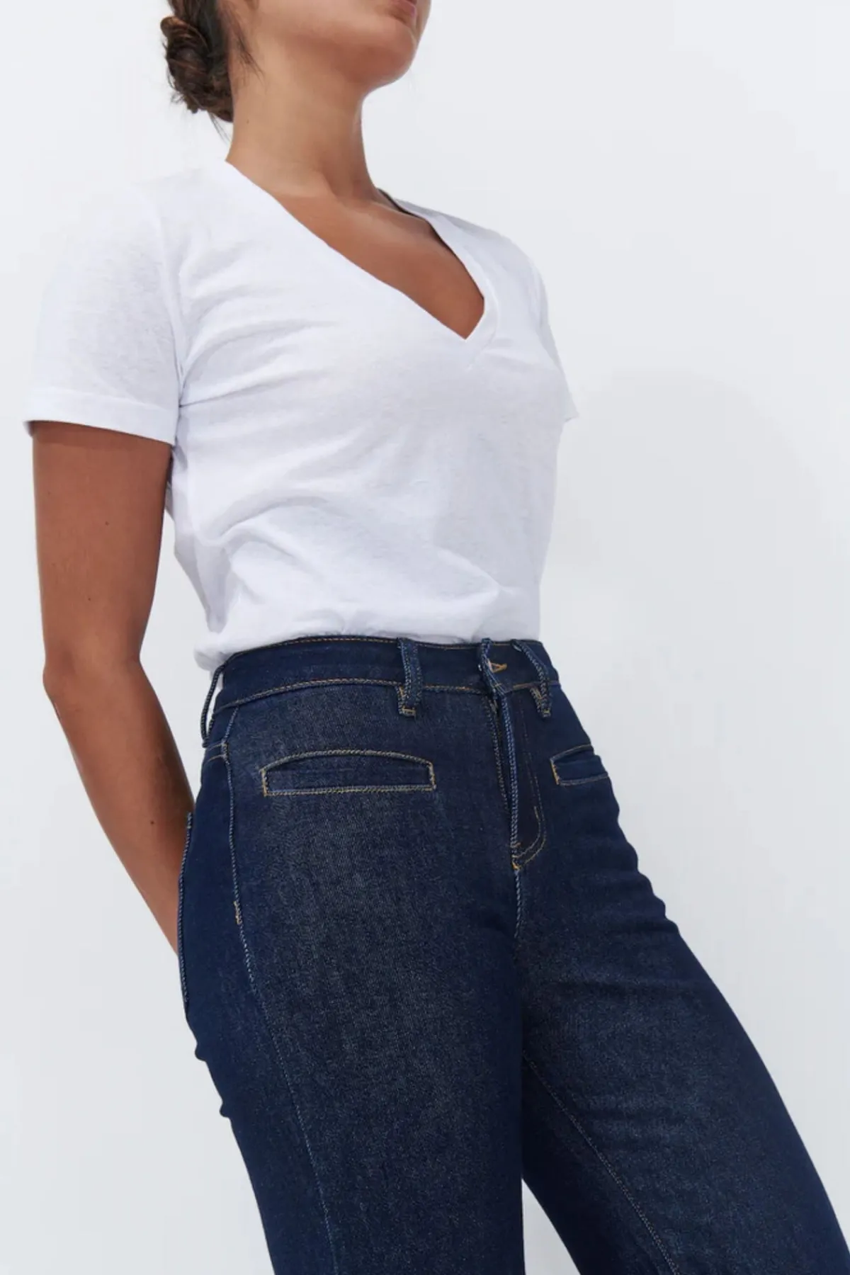 Channel chic 70’s style. A modern twist on the classic wide-legged jean, the Freya features a mid/high rise that’s fitted at the hips with a relaxed, wide leg that flares at the knee. Works so well with a cotton tee and a pair of boots or sandals.