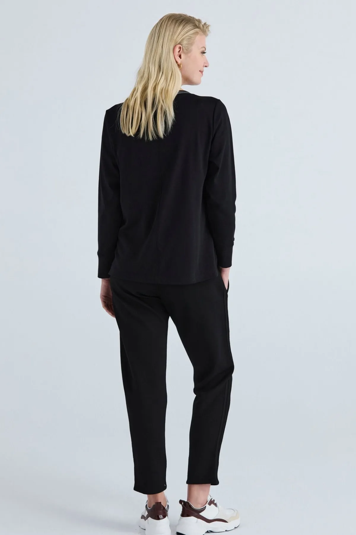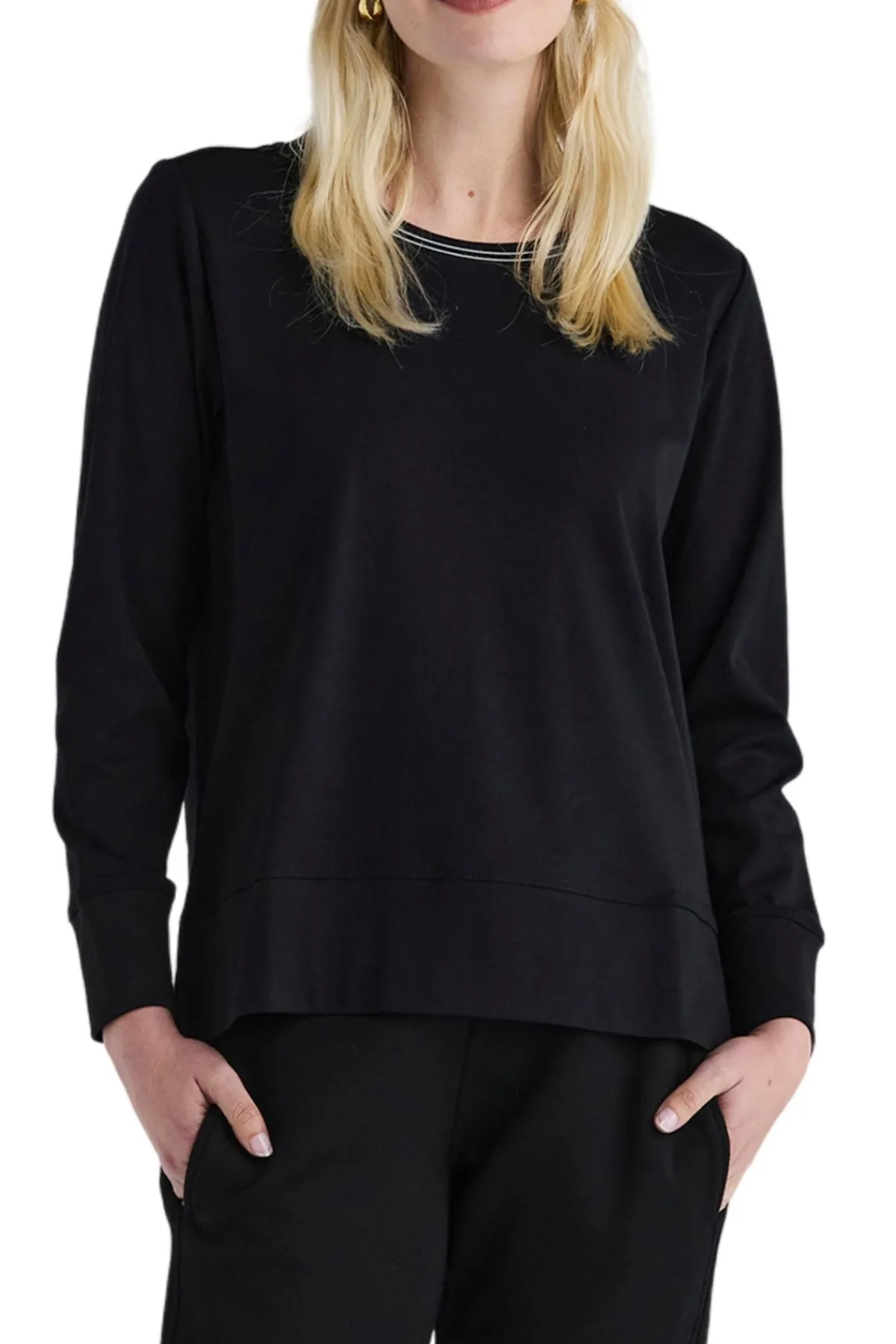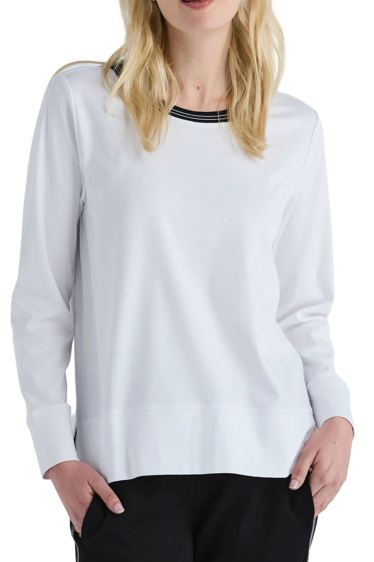 Designed for comfort, the Monty Top is a relaxed-fit cotton long sleeve top with sporty black and white striped tape at the neckline. This piece effortlessly combines style and ease for a laid-back look.