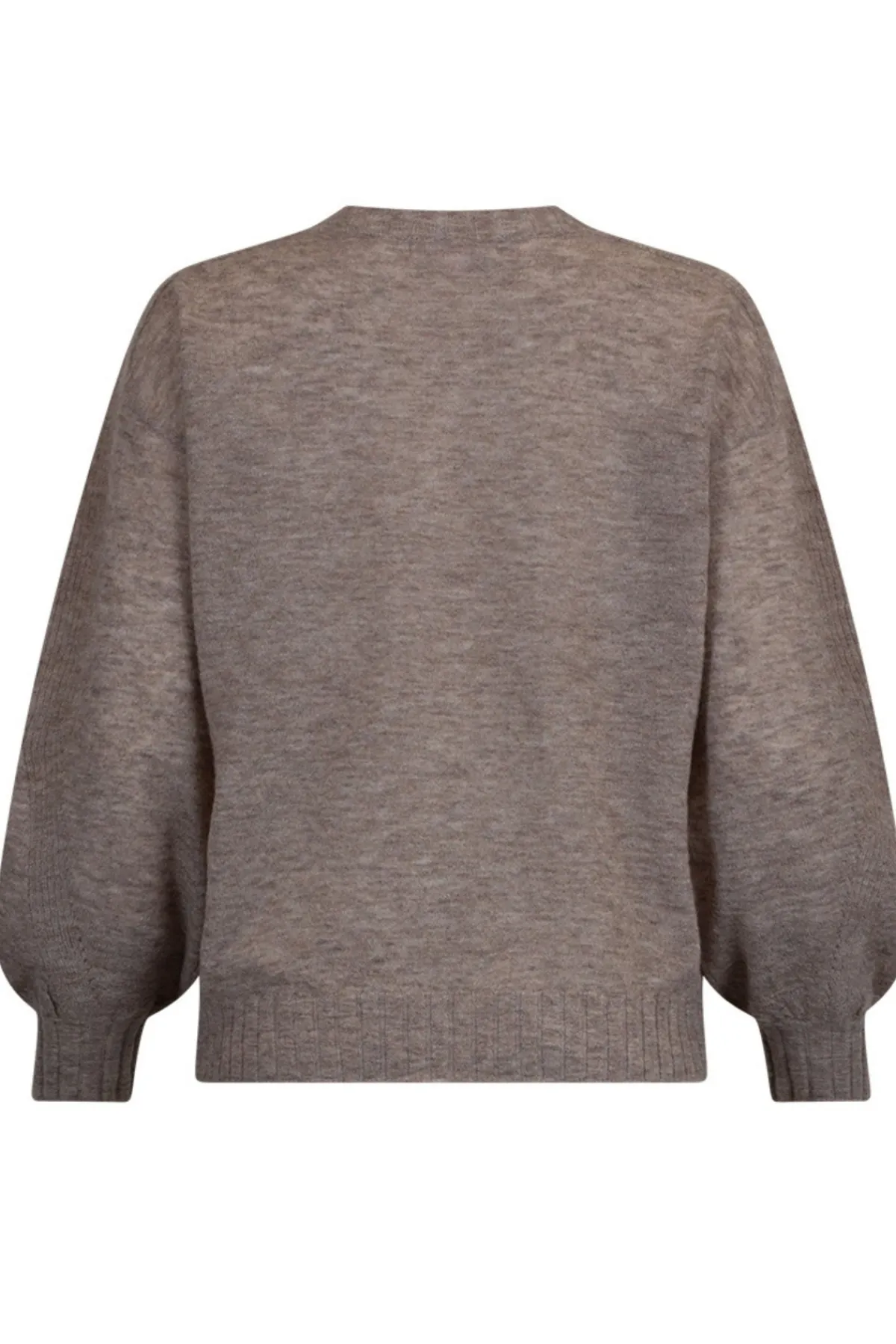 Crafted from a soft alpaca merino blend, this V-neck sweater boasts ribbing and pointelle detail. The blouson sleeves elegantly taper into a fitted cuff, creating a sophisticated silhouette. Elevate your wardrobe with this exclusive piece.