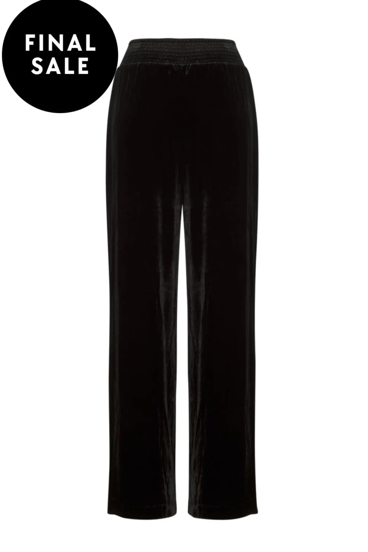 Palazzo style pant in a luxe silk blend velvet with a shirred waistband, and functional pockets.
