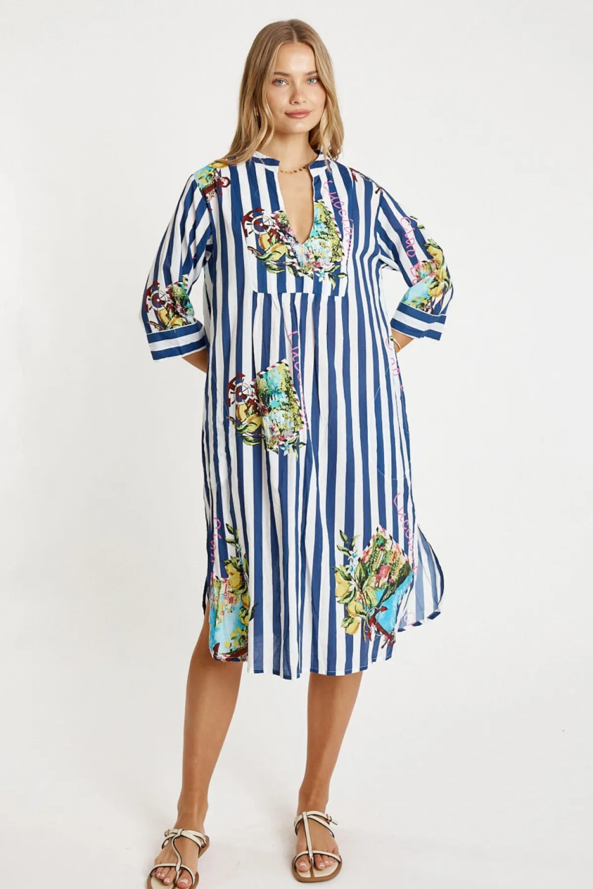 LULA LIFE Dresses-LUCCIANO KAFTAN NAVY-STRIPE