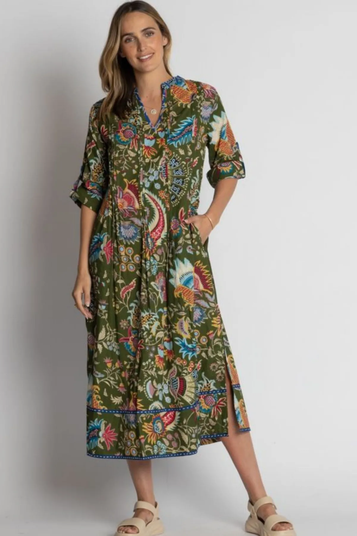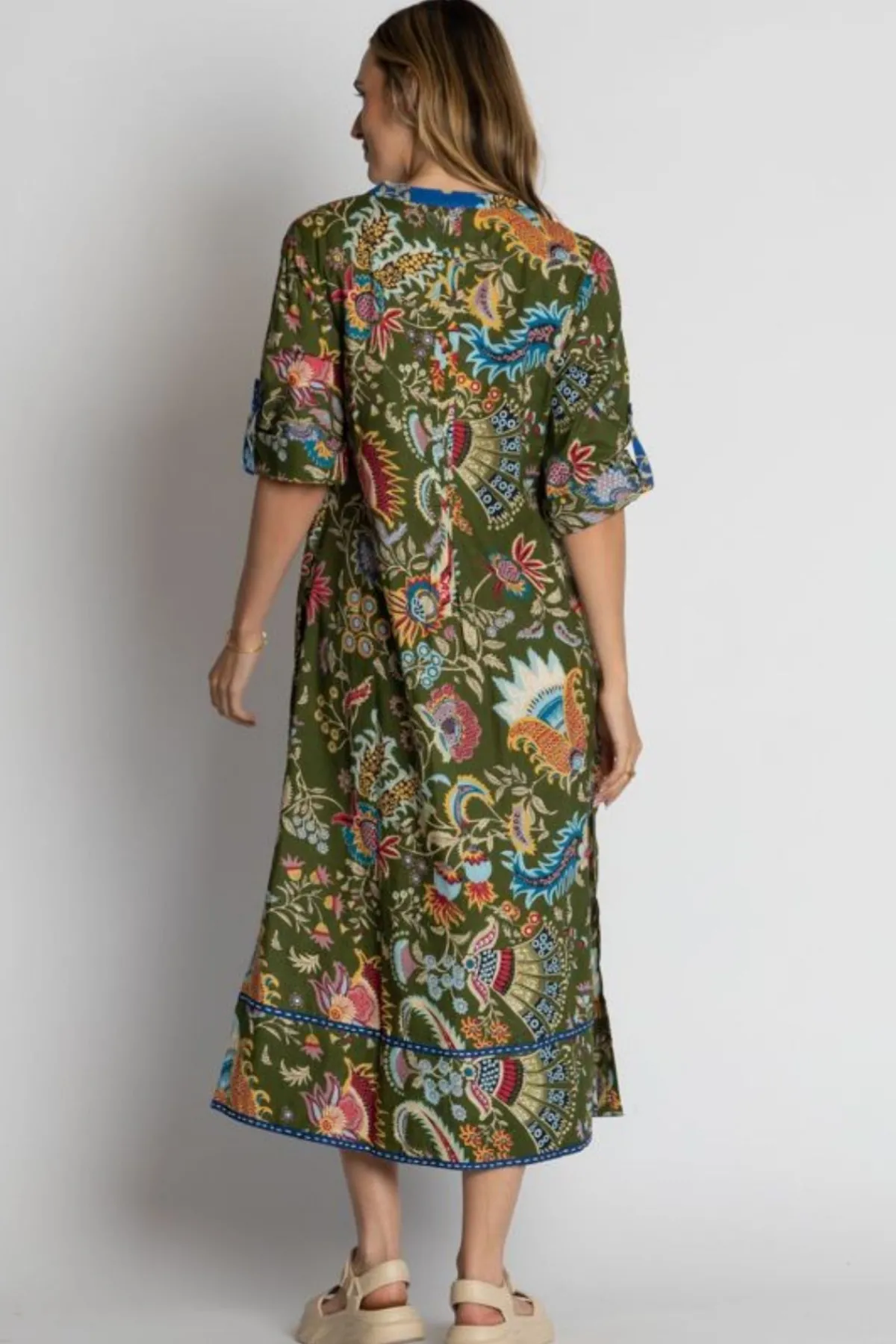 The Nandita Cotton Midi Dress from Lula Life is just perfect for tropical getaways and relaxed days. The gentle A-line silhouette, soft breathable cotton, V cut-out at the neckline and elbow length sleeves with button tab adjustment features will have you feeling comfortable all day.