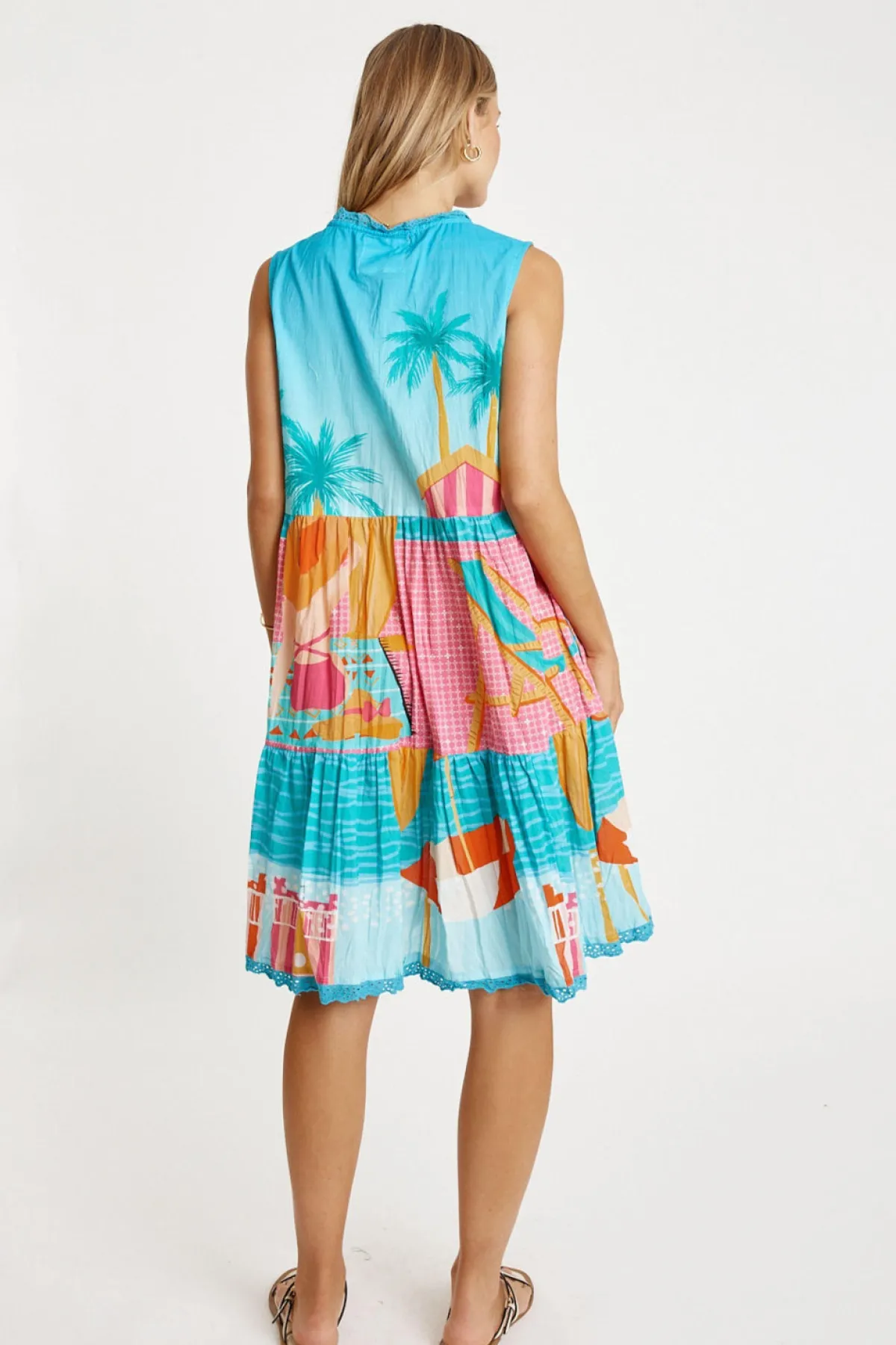 Bright, breezy, and beautifully detailed, the Lula Life Seraphina S/L Dress is the perfect warm-weather go-to. Made from 100% cotton voile, it feels feather-light, breathable, and effortlessly comfortable. The adjustable neckline with tie and tassels adds a playful touch, while the tiered and gathered design gives the dress soft movement and relaxed charm. Practical side pockets, a flattering knee-length cut, and delicate lace hem edging complete the look. Finished in a vibrant digital print and proudly designed in Australia, this sleeveless dress is ideal for sunny days, holidays, and easy weekend style.