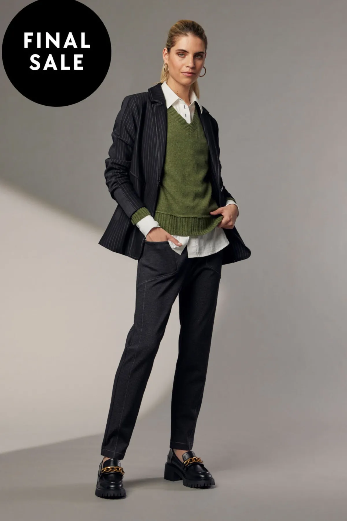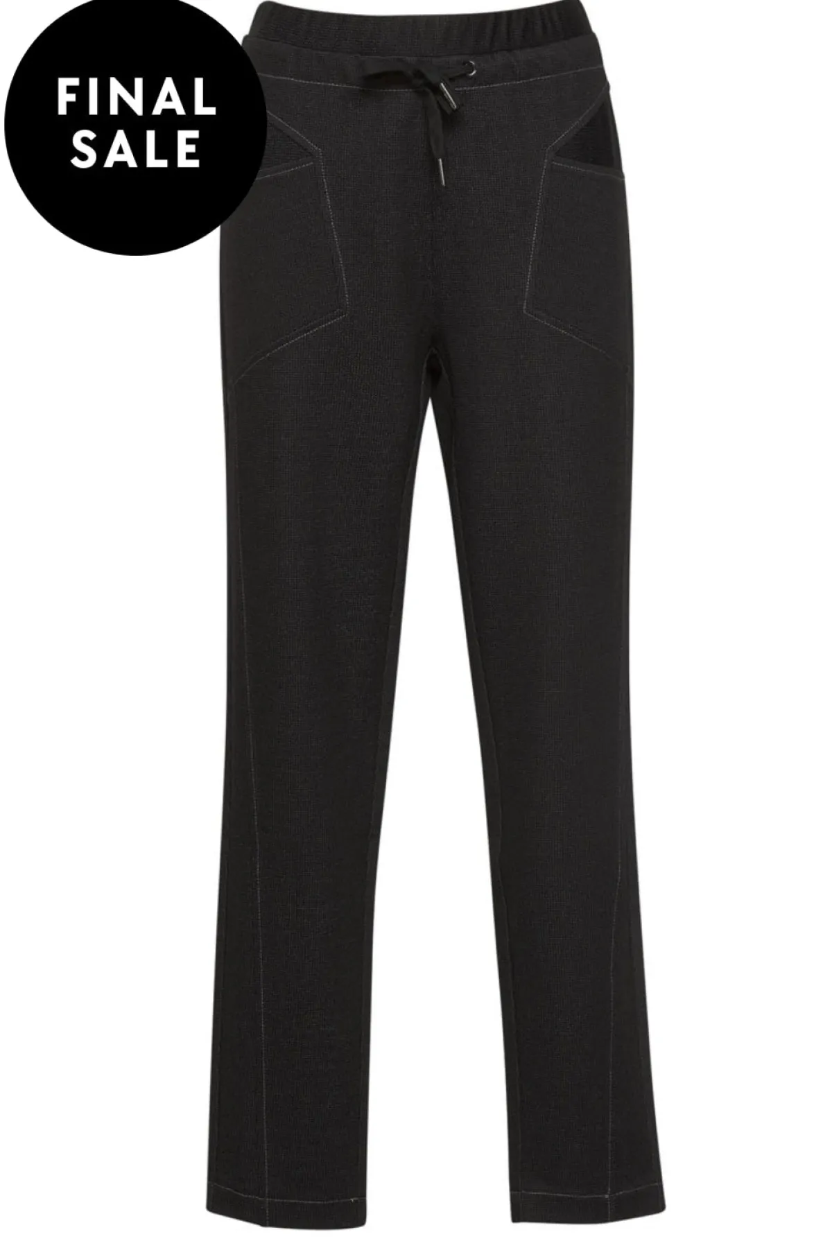 Introducing the Litt Pant by Madly Sweetly, the perfect blend of casual style and versatility. Designed for both travel and work, it’s the ultimate wardrobe staple for weekends and beyond. Timeless in its design, this pant is a must-have for any modern wardrobe. Stretchy classic pant with angled seaming and front slanted pockets with a slim leg line. Drawstring waist is elasticated for a comfortable fit.