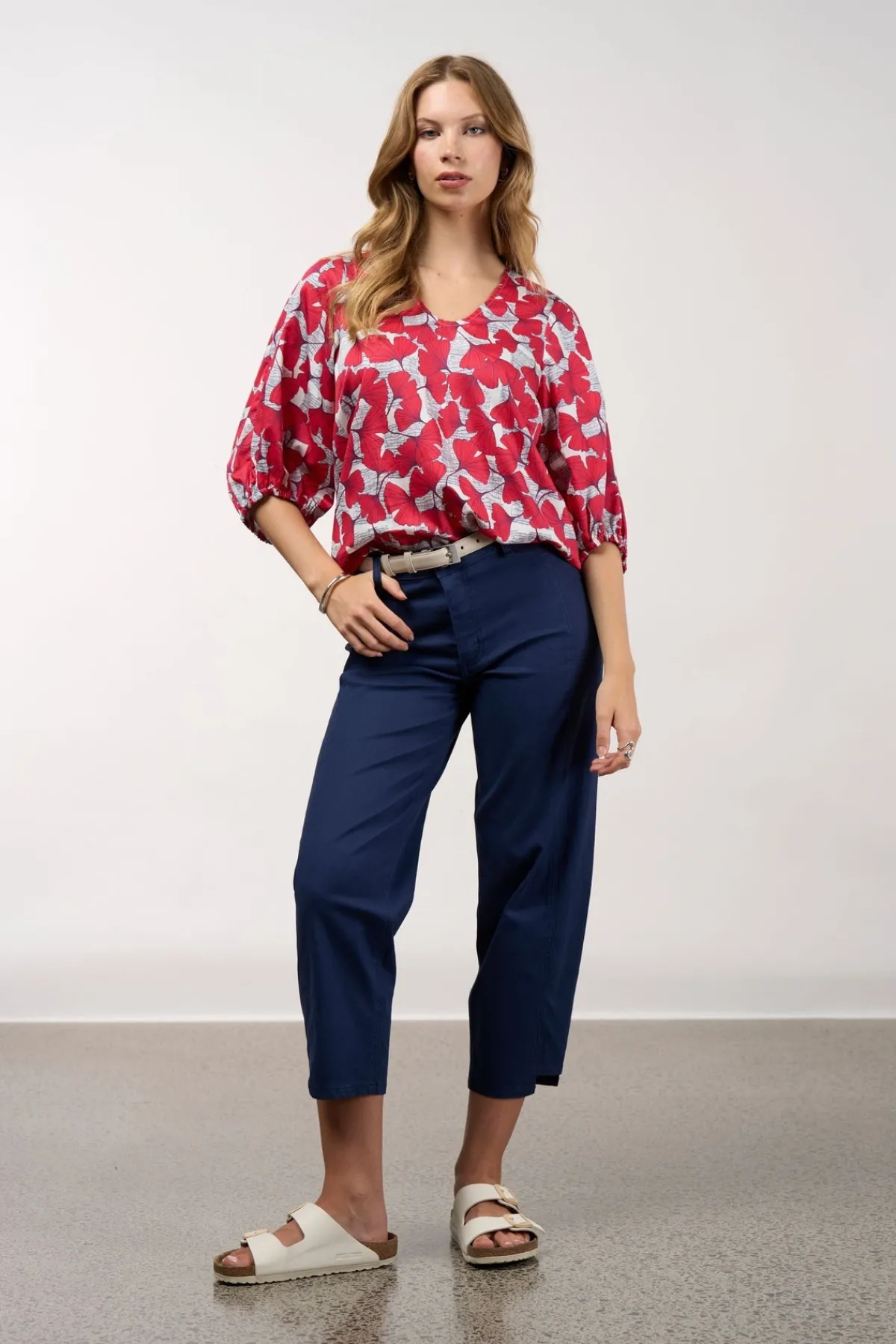 The Take Flight Top offers a flattering 3/4 sleeve silhouette crafted from soft, breathable fabric for effortless comfort. Perfectly travel-ready, this blouse pairs beautifully with jeans or linen pants, combining sophistication with ease for your everyday and getaway wardrobe.