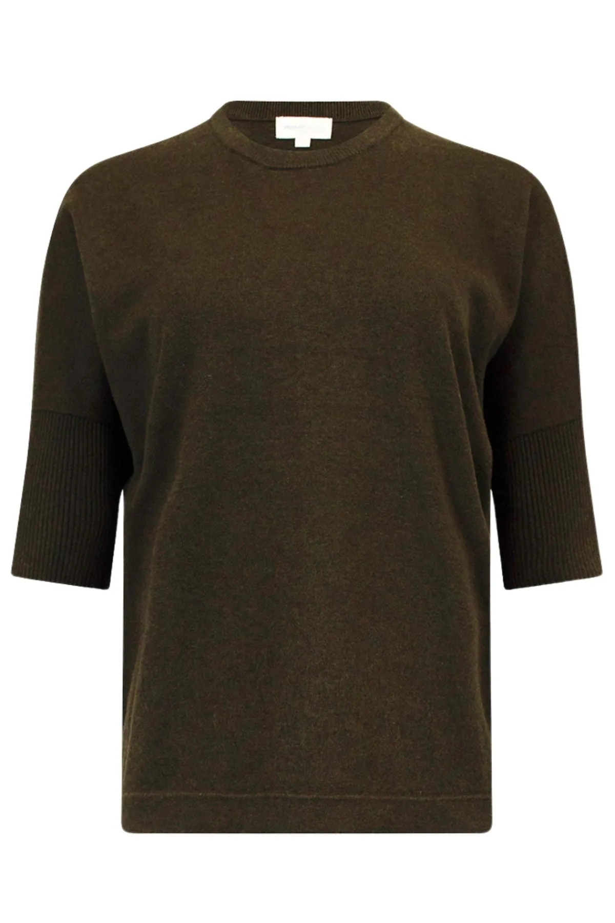 Crafted with a soft cotton cashmere blend, this crew neck tee features a dropped shoulder design and deep ribbed cuffs, perfect for layering. Elevate your wardrobe with this exclusive piece.