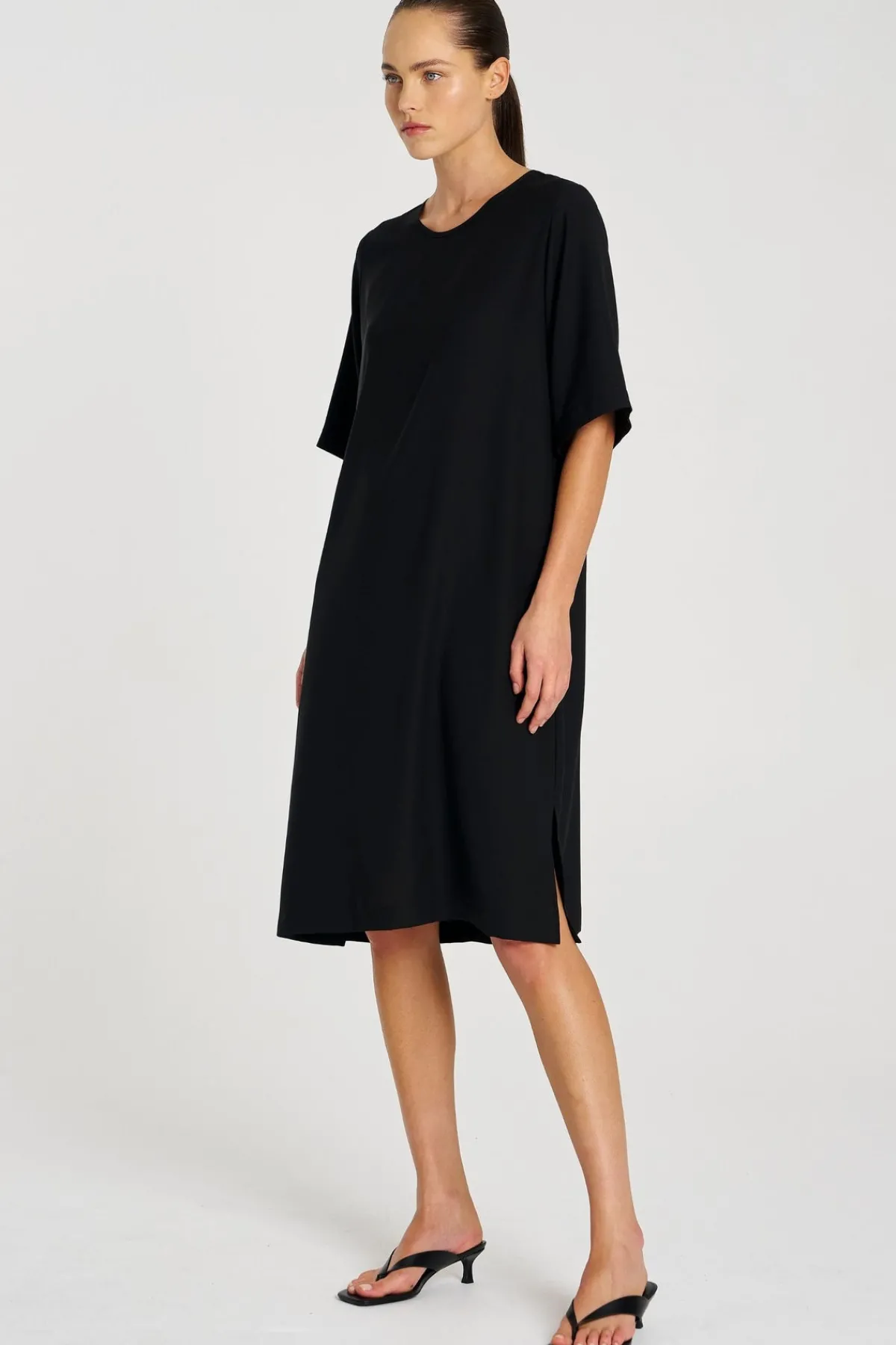 Crafted from Mela Purdie’s drapey and comfortable Micro Denier. The Plaza Dress features a relaxed silhouette with splits at the side seam. An effortless wardrobe staple.