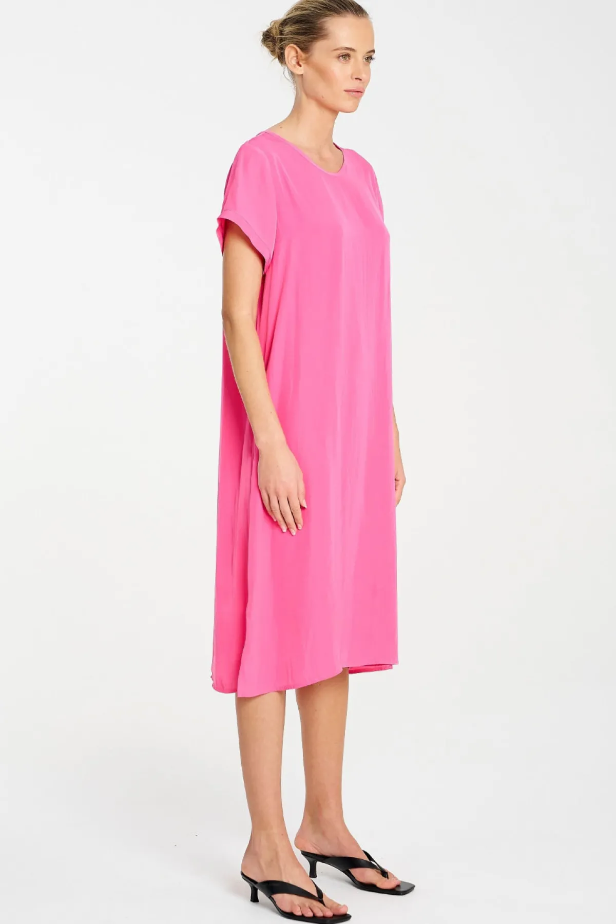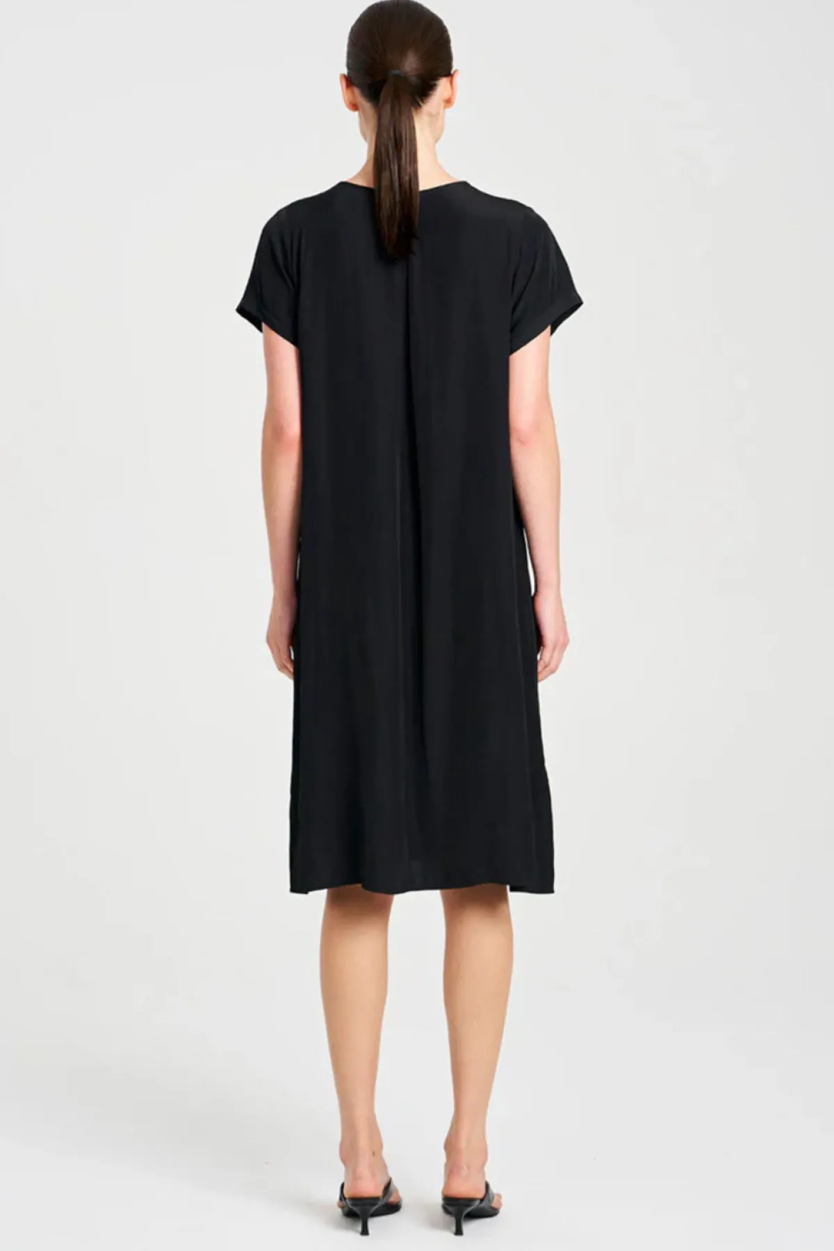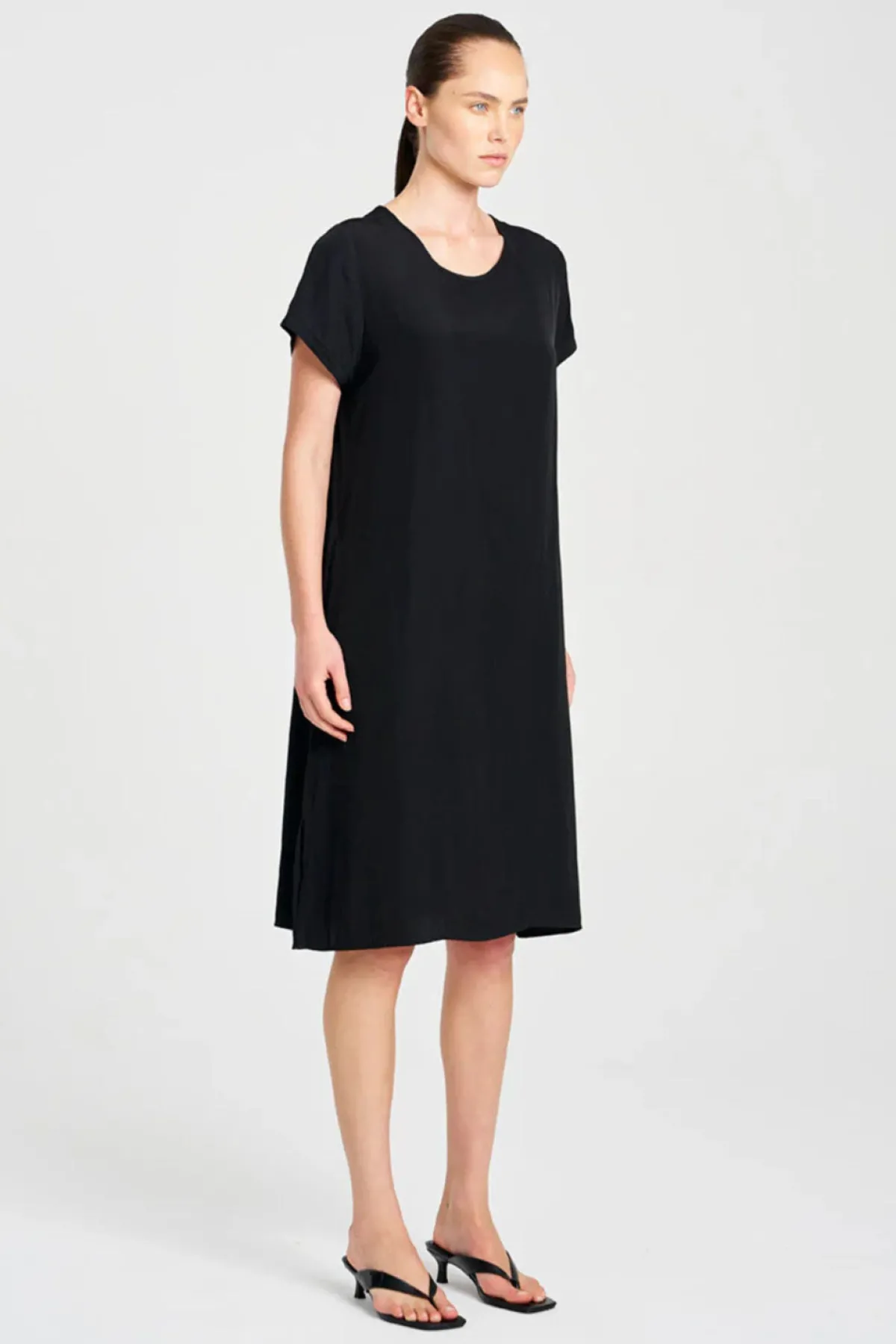 Crafted in Mela Purdie’s mid-weight Mache fabric. The Transit T Dress offers an effortless, loose fit. With a scooped neckline and flattering short sleeve.