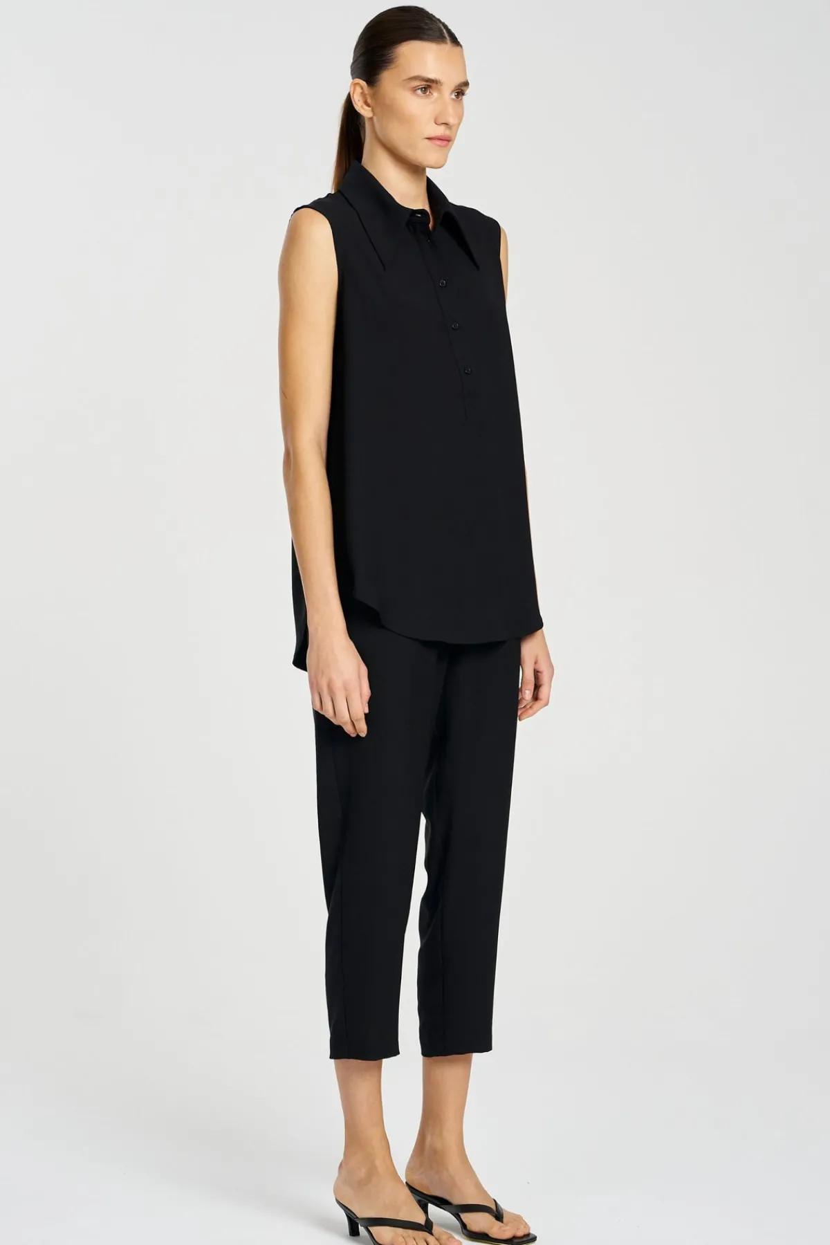 Cut from Mela Purdie’s Micro Denier with it’s fluid handle and low sheen finish. The Capri pants are cropped in length and cut for tapered fit through the leg.