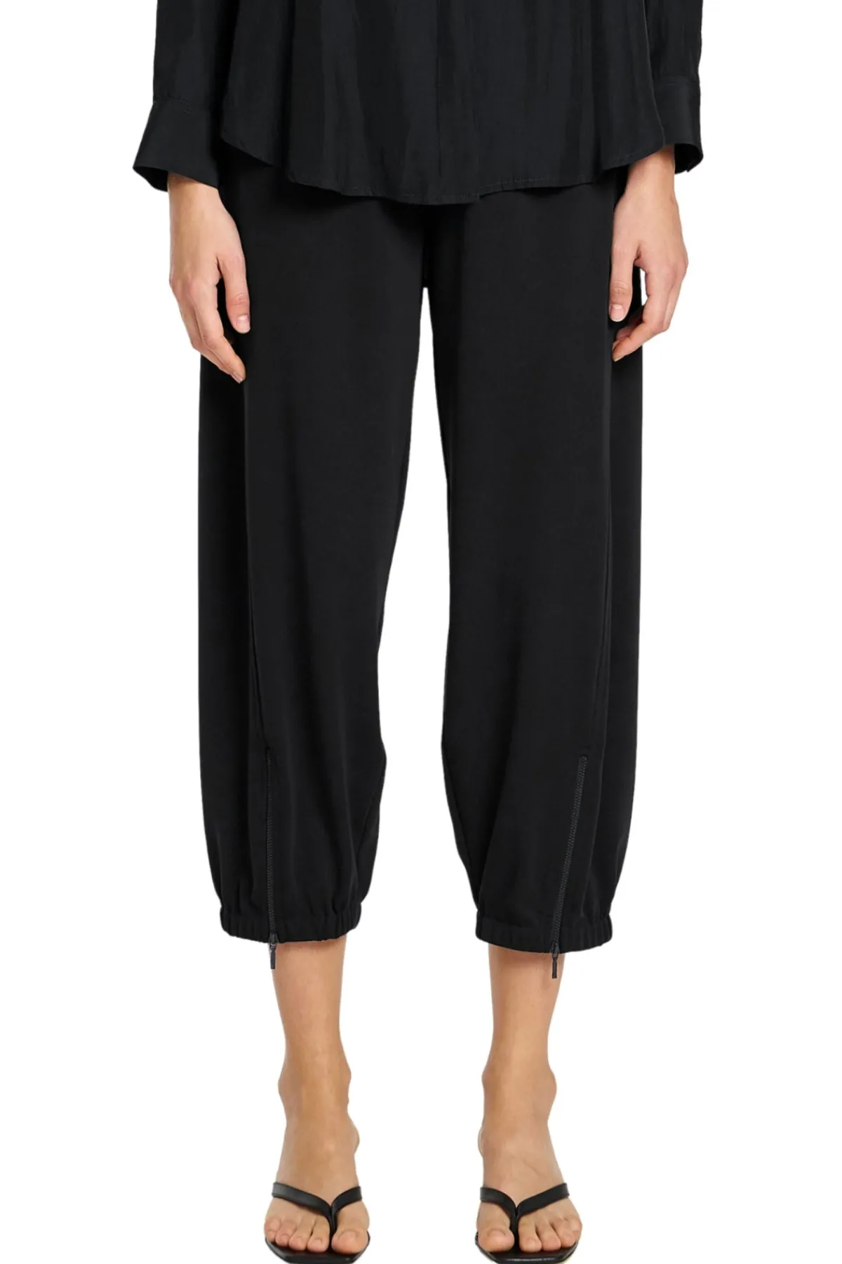 Crafted from Mela Purdie’s compressed matte finish, Powder Knit. The Club Pant features a dramatic barrel leg silhouette with zip detailing and elasticated cuff hem.