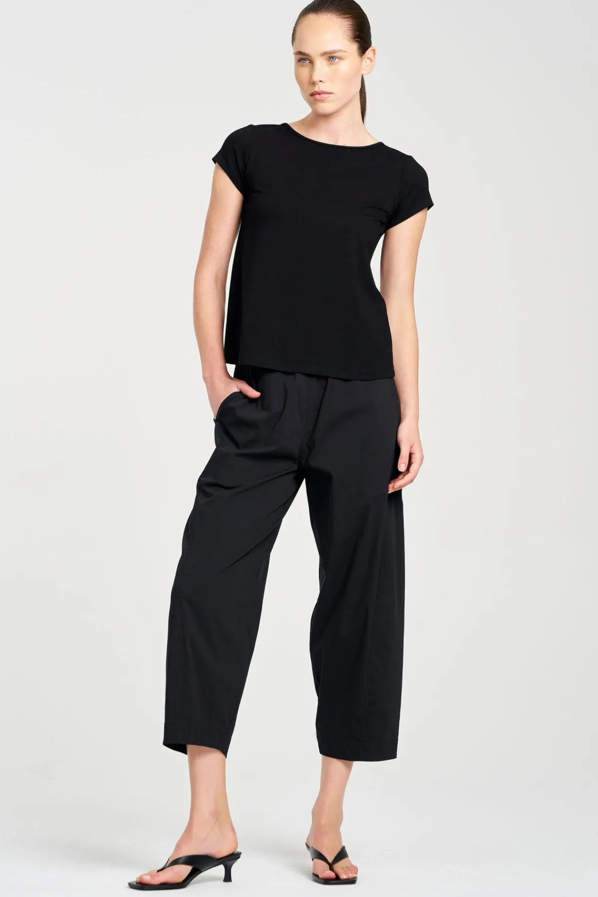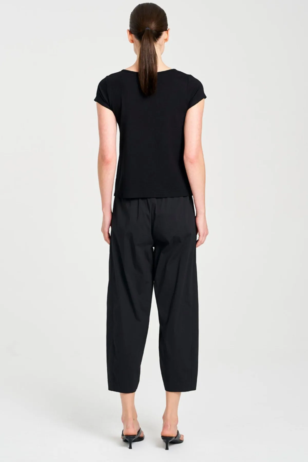 Crafted in Mela Purdie’s Lightweight Microprene, A crisp, cotton rich fabric with high stretch and a polished finish. The Cross Pant features contouring panel seams on a loose silhouette.