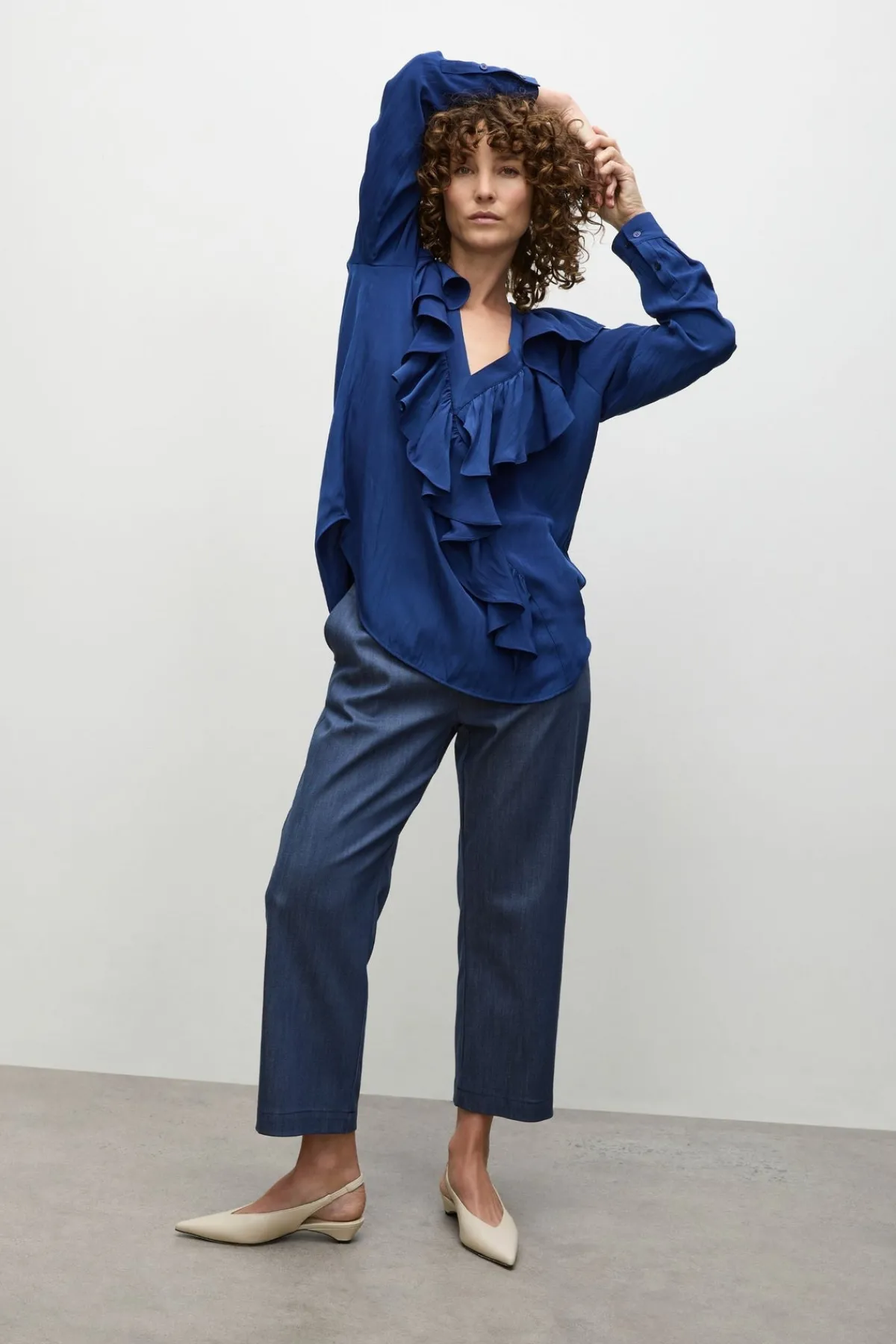 Discover Mela Purdie’s Soft Stretch Denim fabric, characterised by its super 4-way Stretch & Memory. The Tapered Flat Pant is a fitted silhouette with purposeful comfort.