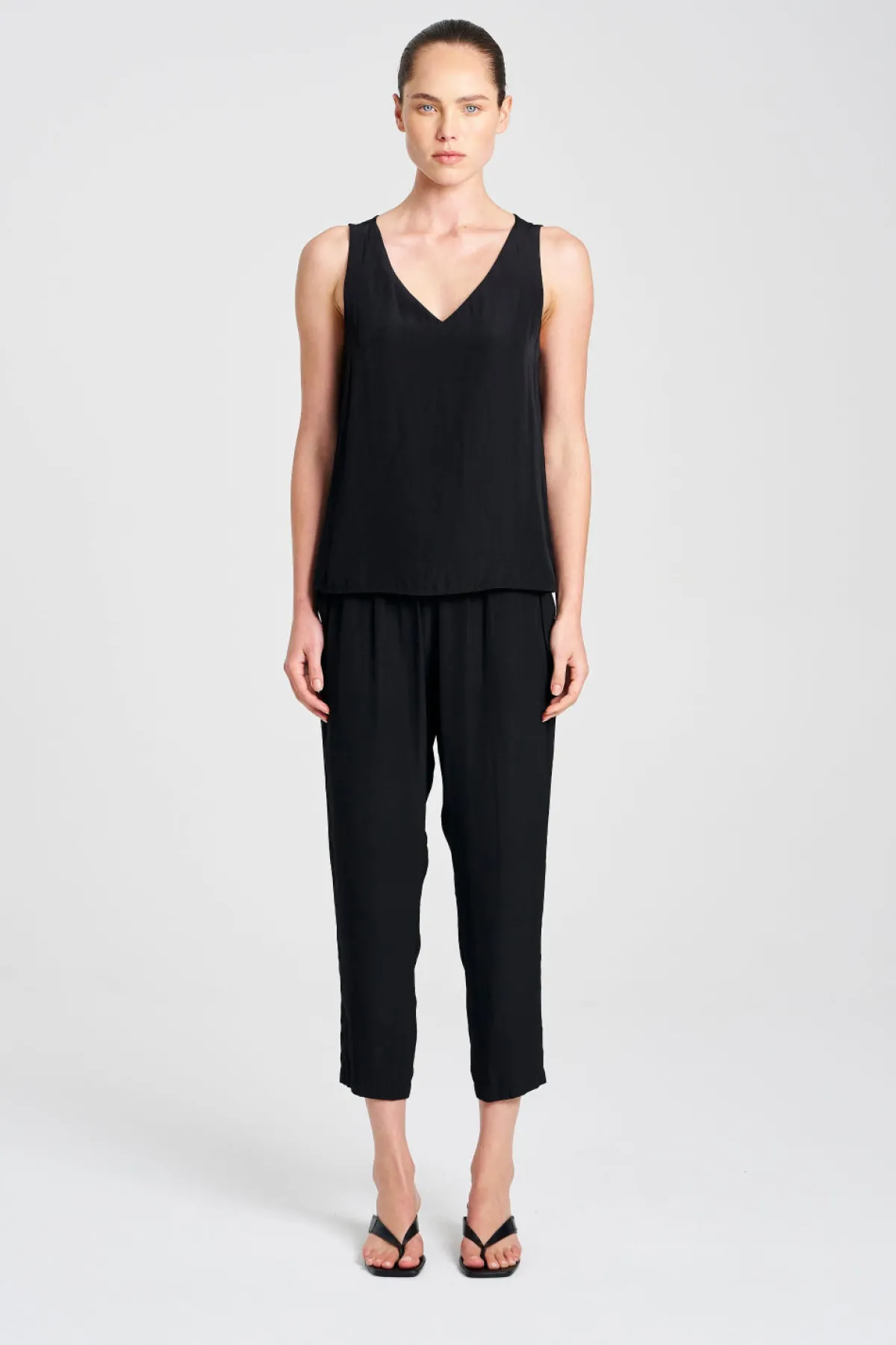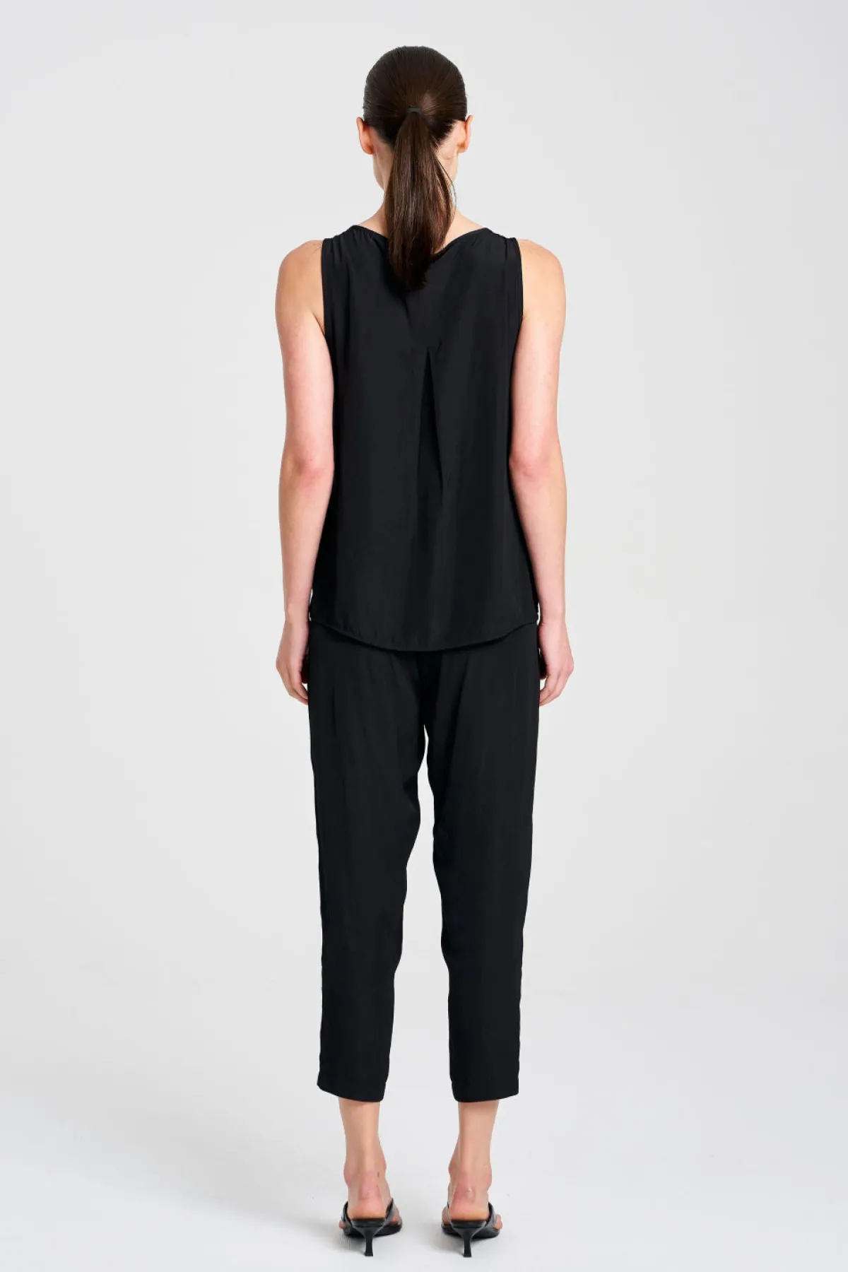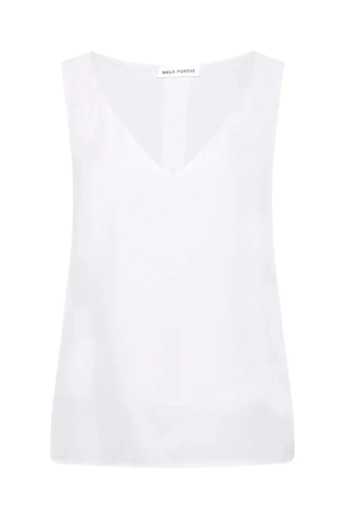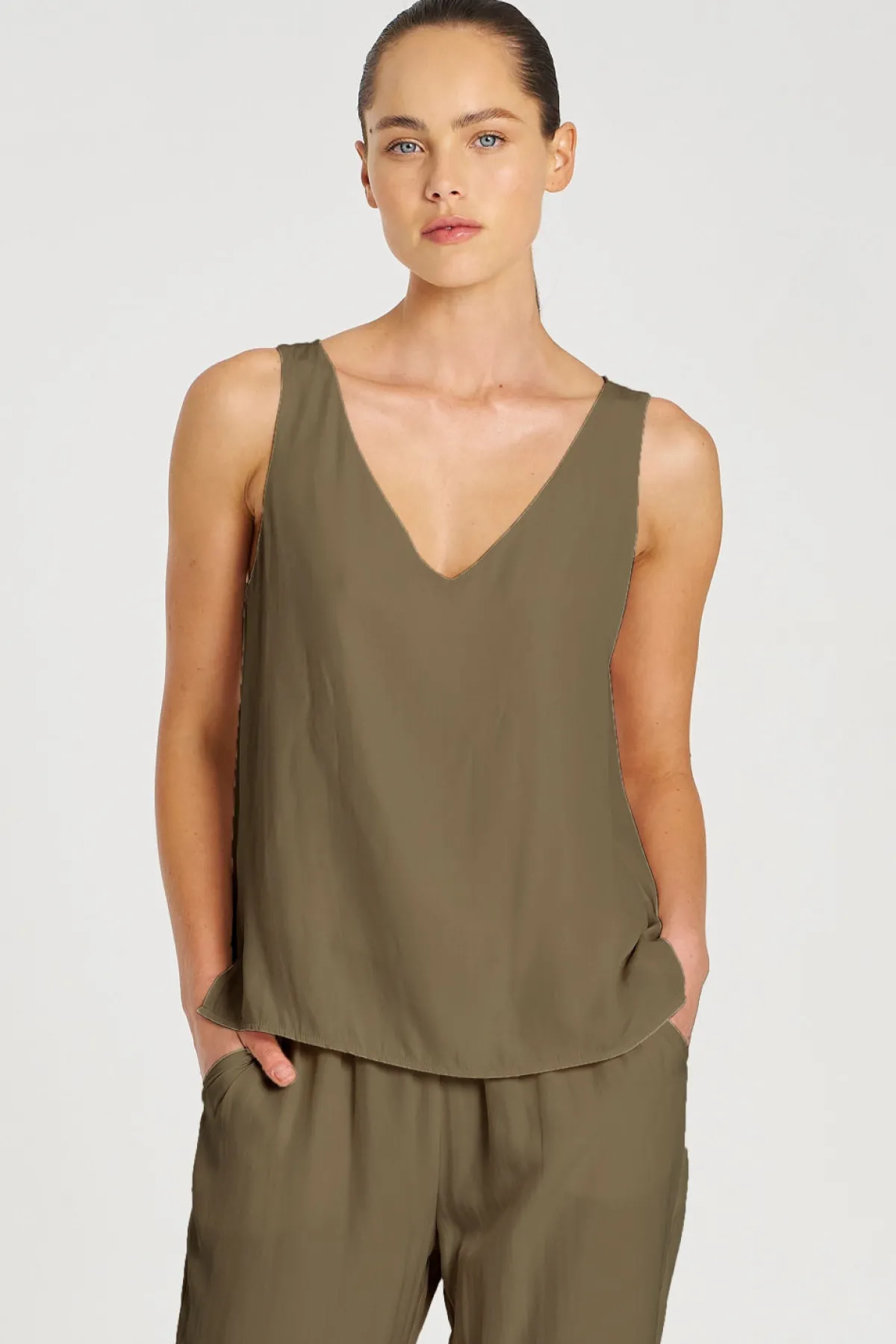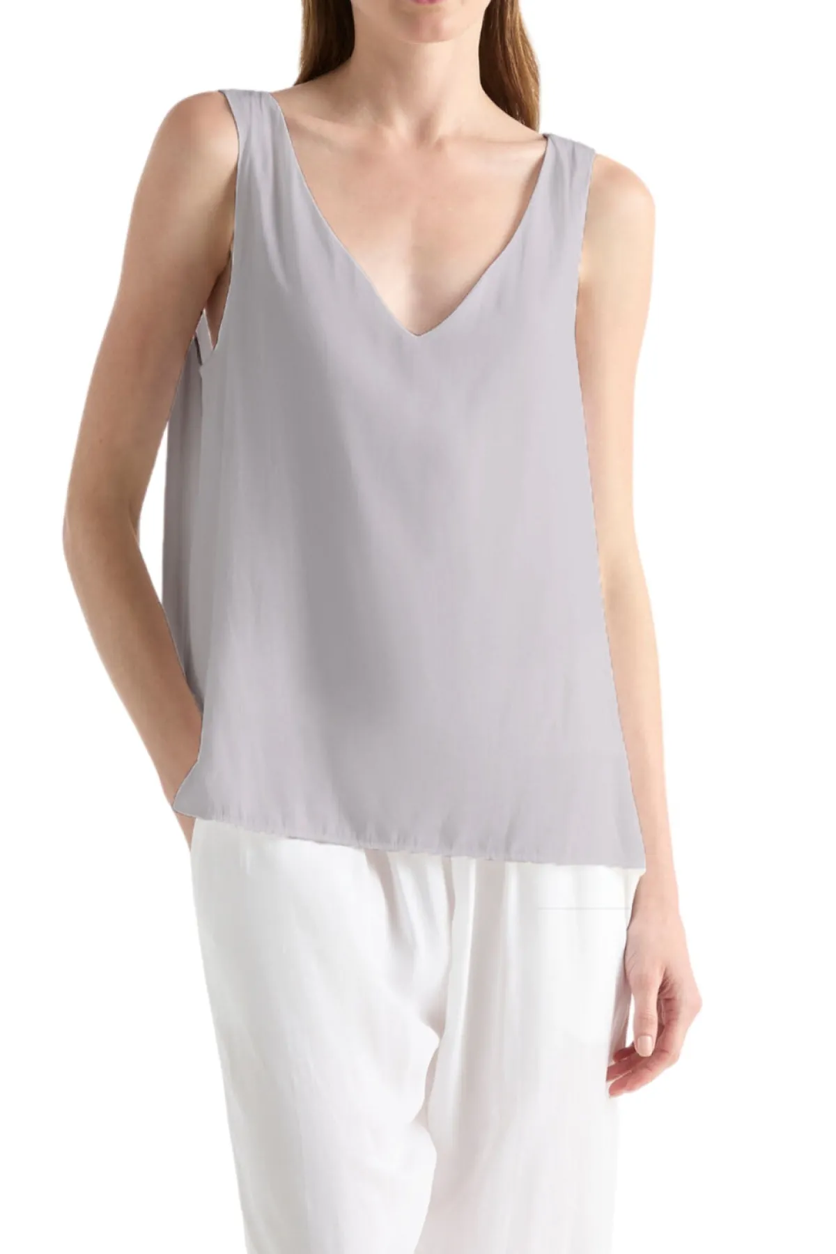 Crafted from Mela Purdie’s fluid Mache, offering a fuller bodied feel and tactile face. The Audrey Tank is a Mela Purdie essential with a universally flattering soft v-neckline. The fully covered back features a placket for ease of movement. Perfect for layering, the Audrey Tank has a stepped hem for longer length at the back and a double layered front for extra coverage.