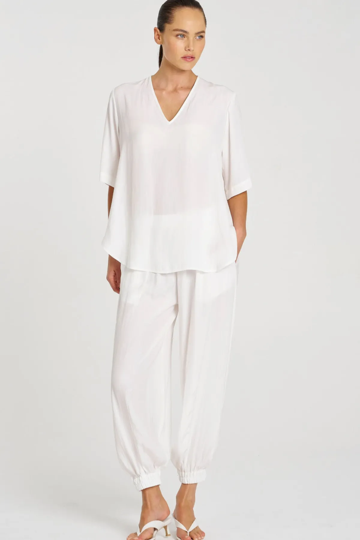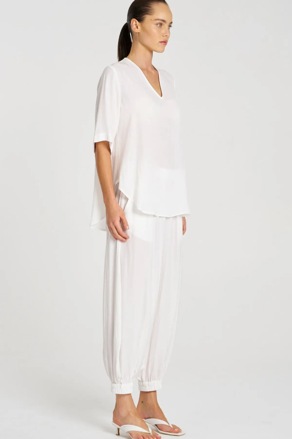 Crafted from Mela Purdie’s classic Mache, a fine Denier technical weave with an airflow finish. The Swish Plaza Top features a flattering V neckline and curved hem.