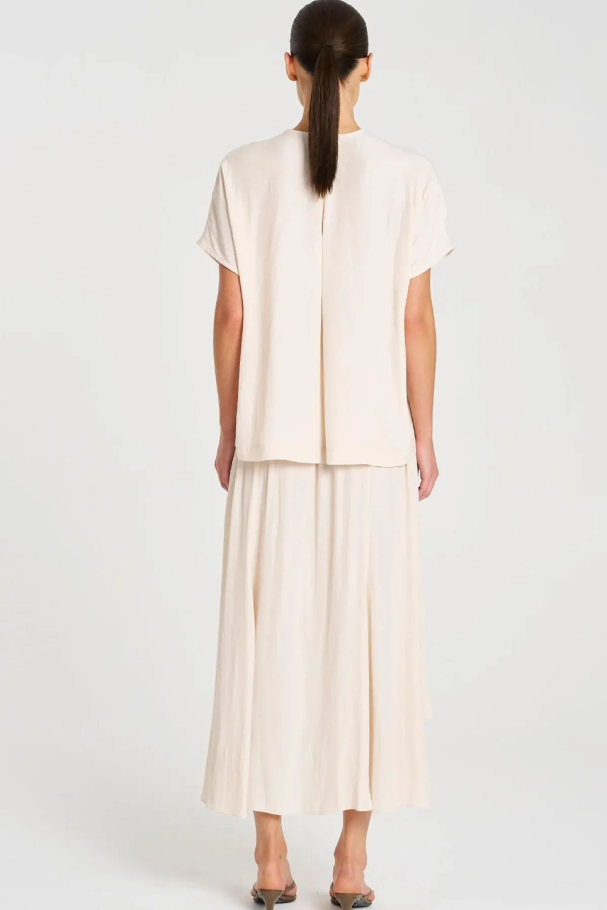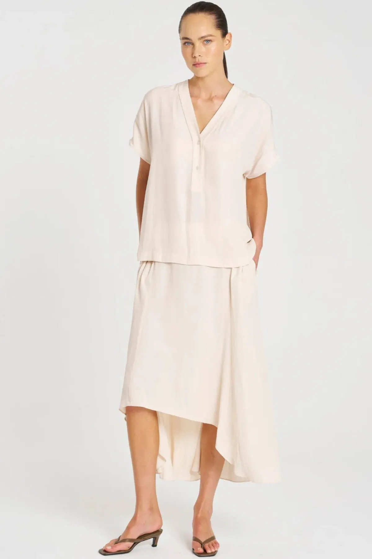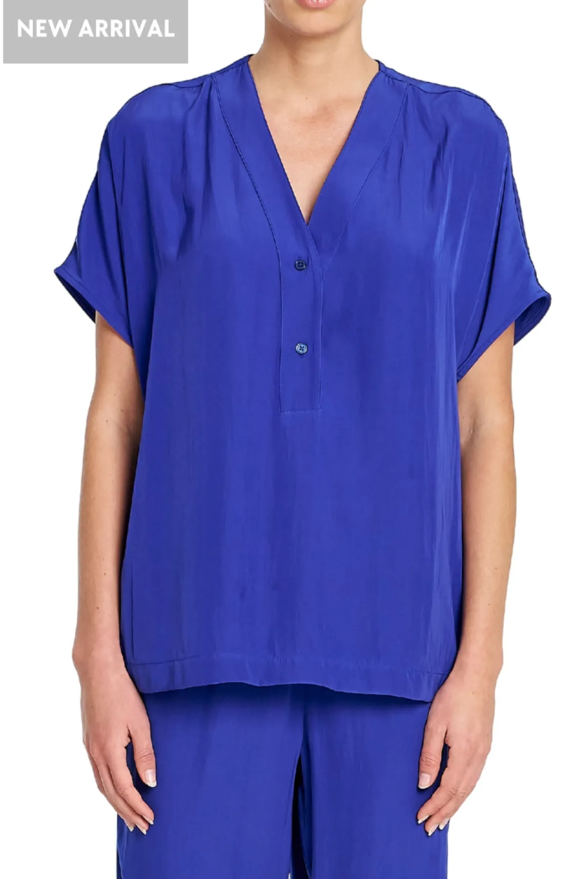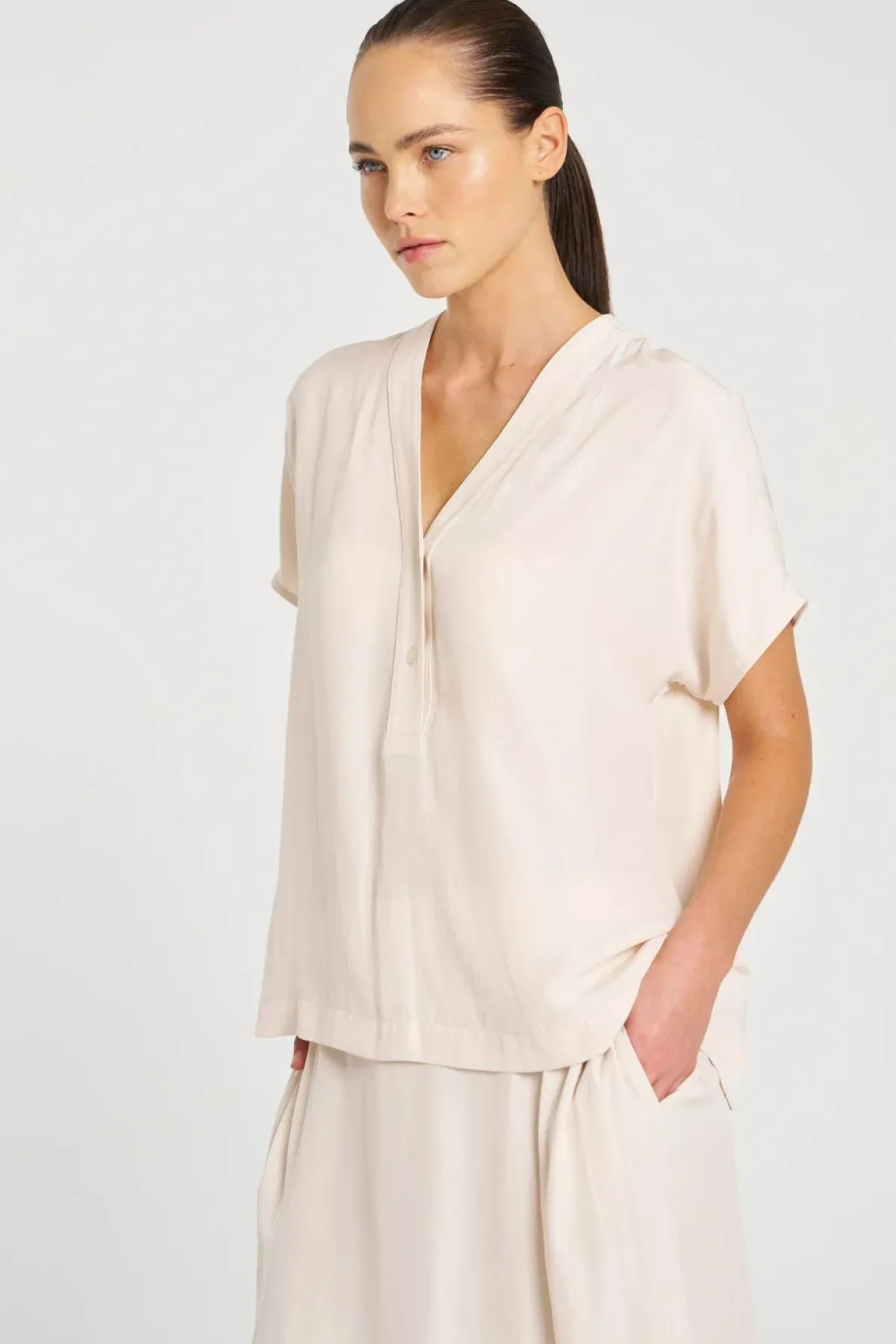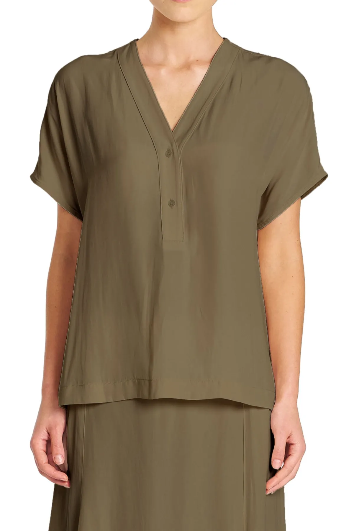 Crafted from Mela Purdie’s classic Mache, a fine Denier technical weave with an airflow finish. The Wedge Tab Shell features a cap sleeve and a flattering neckline with a button closure.