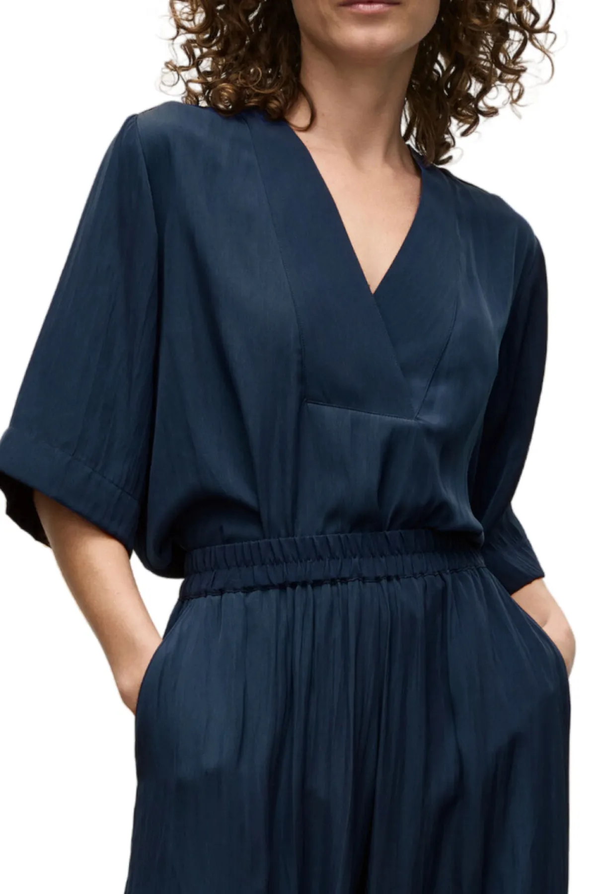 - V neck cross over detailing