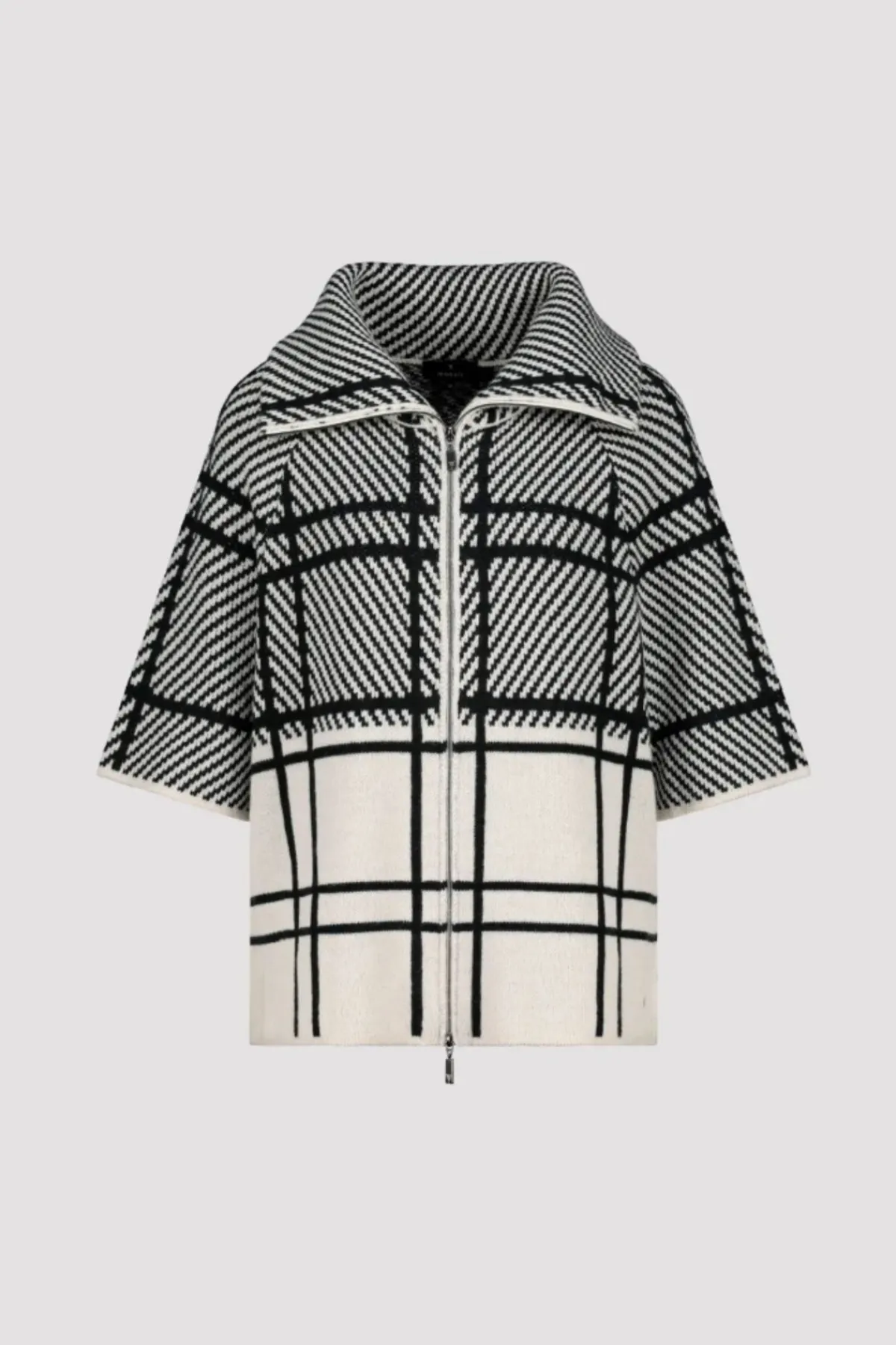 MONARI Jackets-CHECK KNIT CAPE BLACK-WHITE