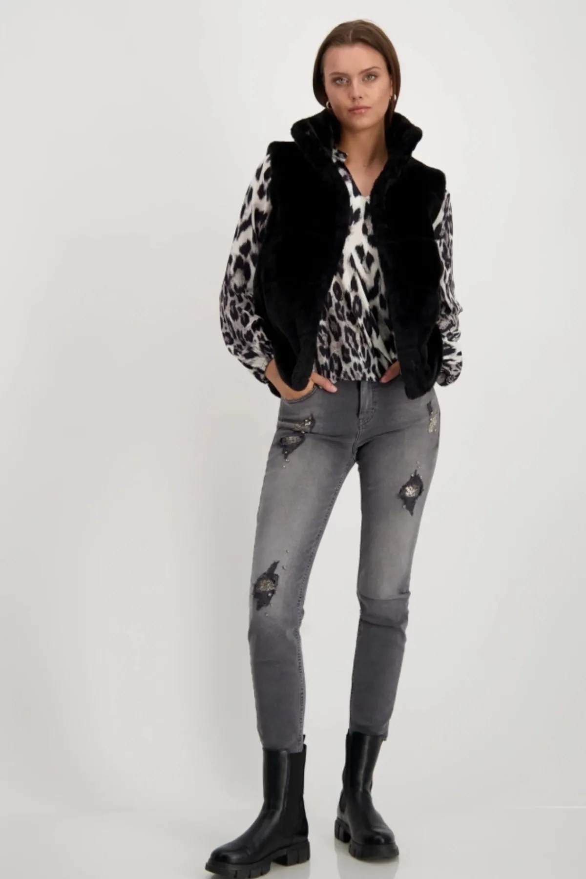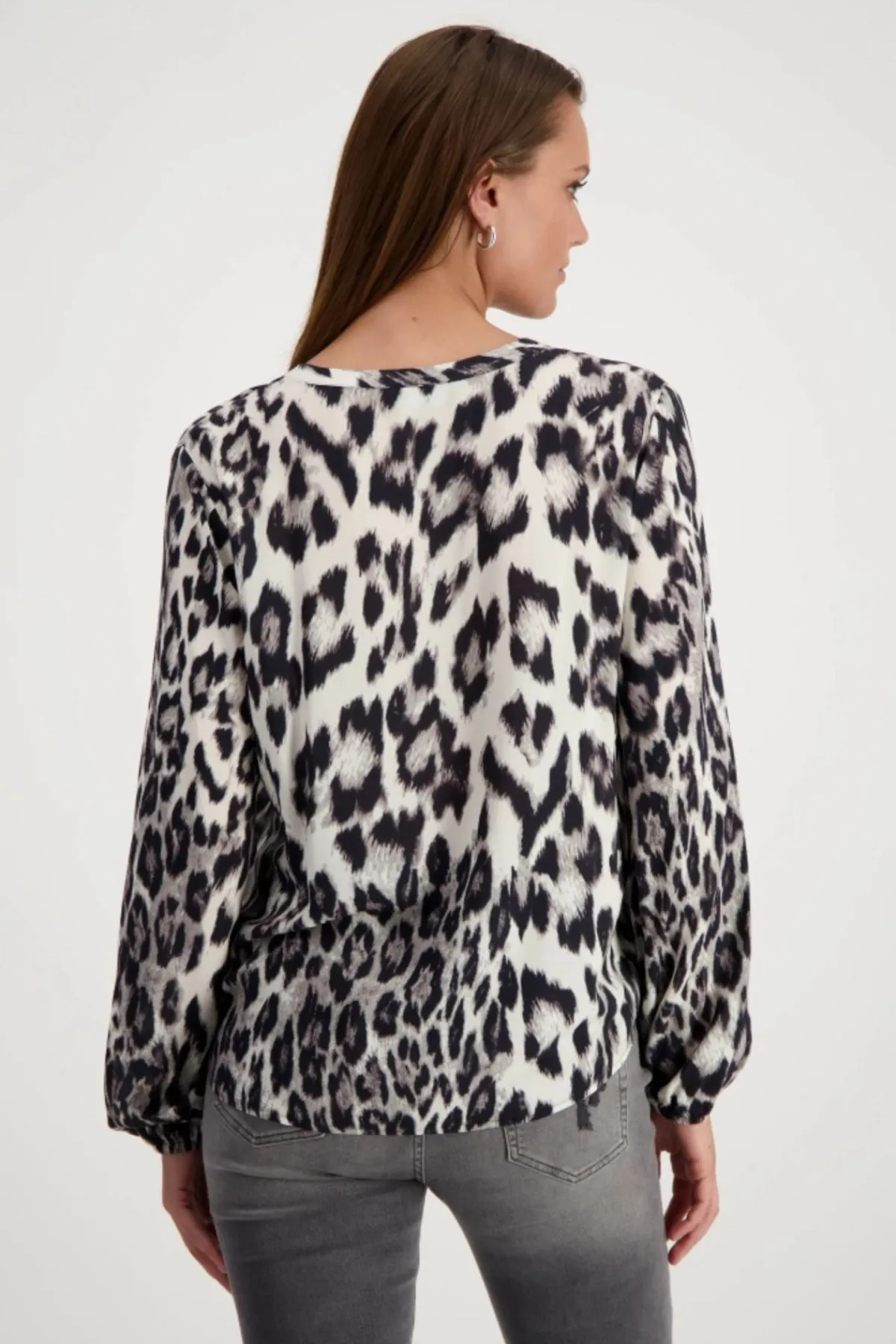 This blouse made of 100% viscose impresses with its trendy leopard print pattern and the elasticated band at the sleeve hem.