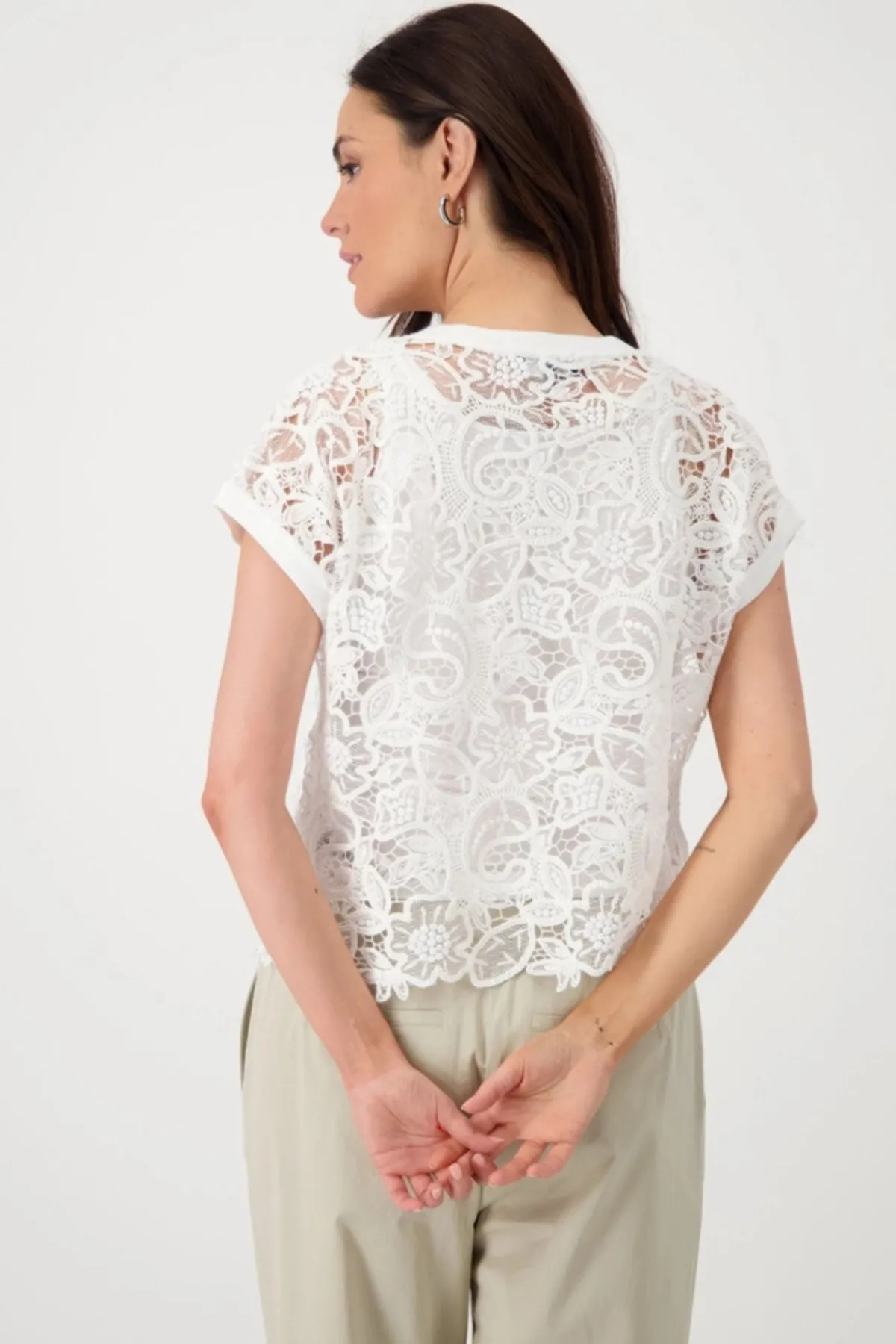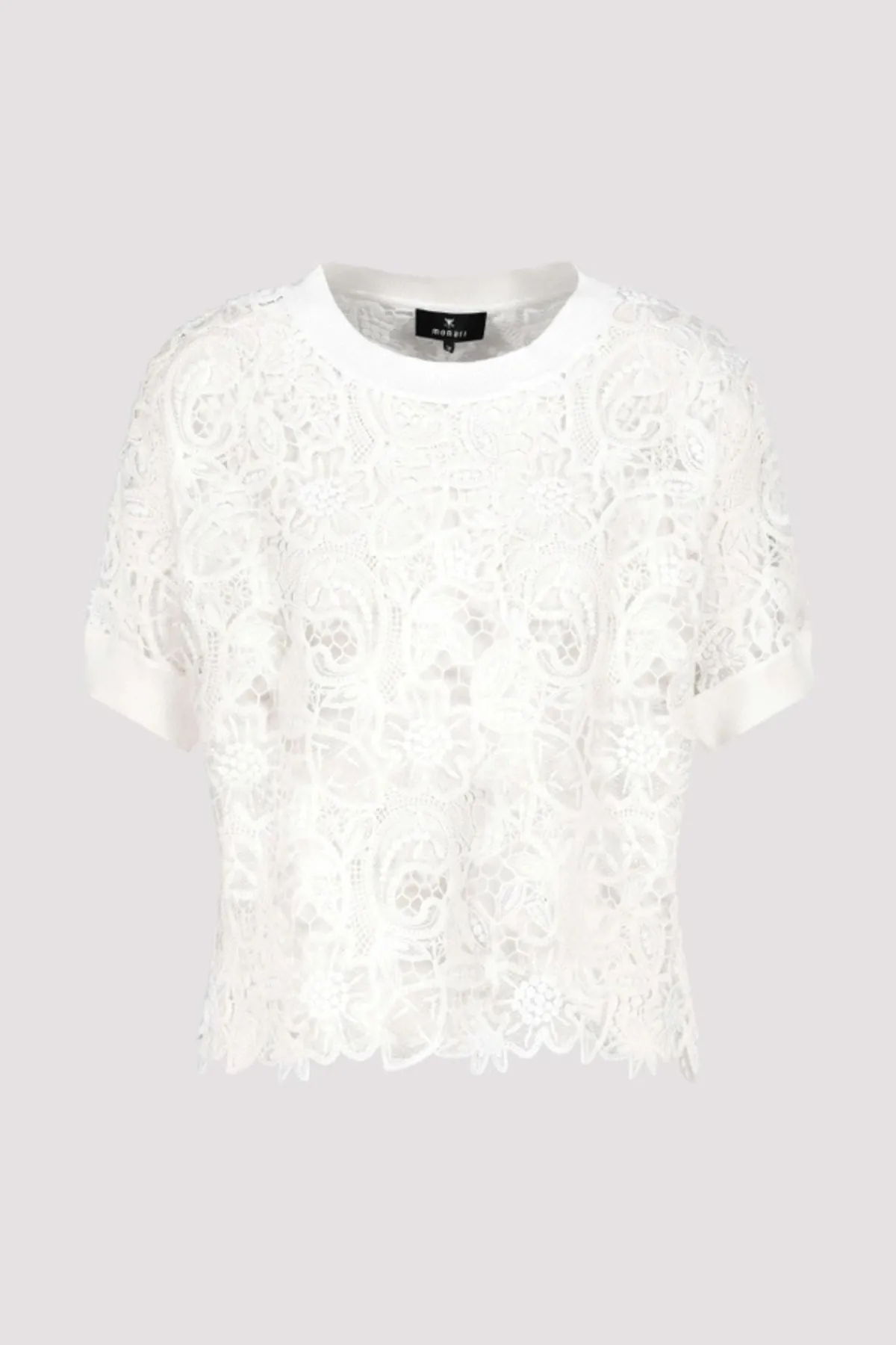 Made from a high-quality cotton blend, this shirt combines delicate lace with a floral pattern for an elegant look.