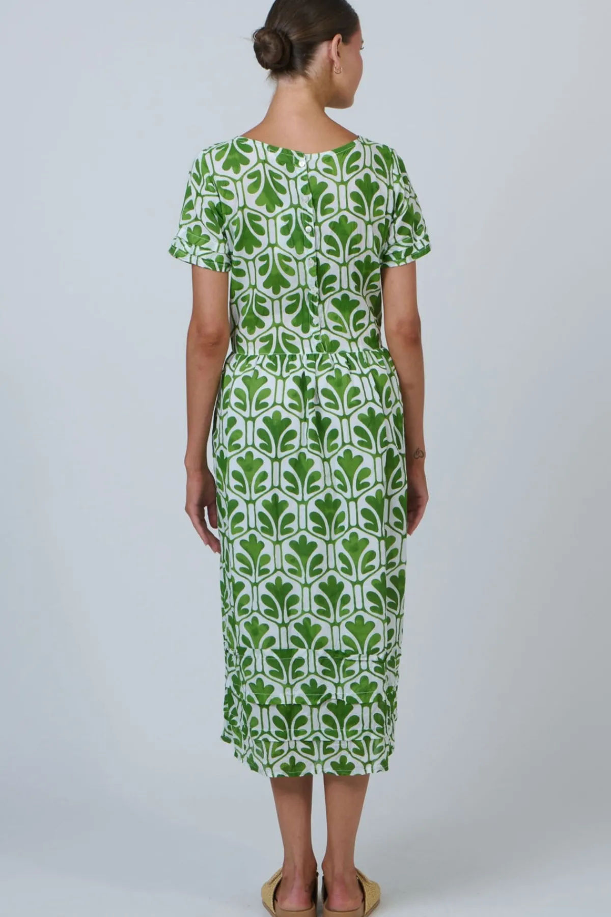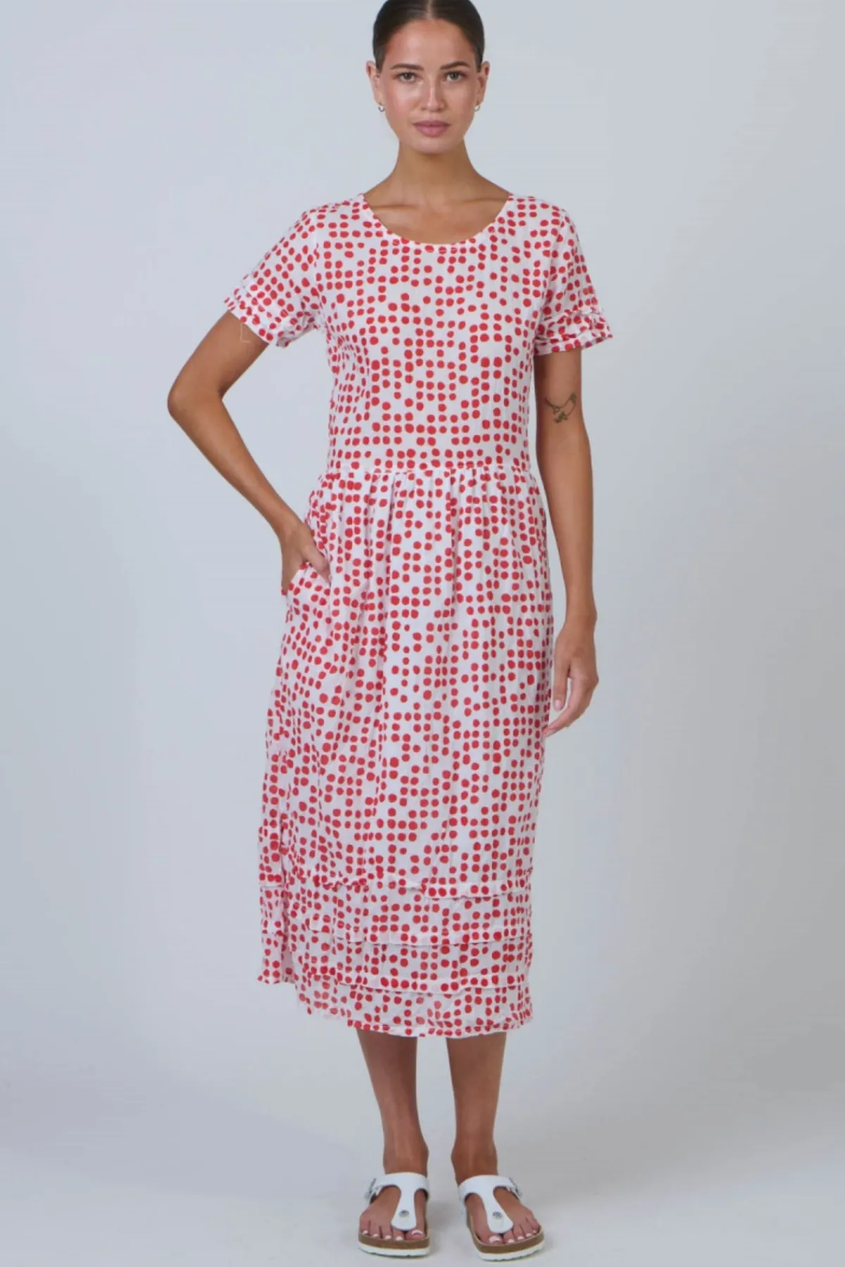 Casual yet captivating. The Midi Dress embodies effortless summer elegance with its relaxed silhouette and practical side pockets. Featuring a subtle scoop neckline, flutter short sleeves, and a gathered waist that creates graceful movement. Crafted from 100% crinkle cotton, the midi-length design offers versatile styling options for both casual outings and more dressed-up occasions.