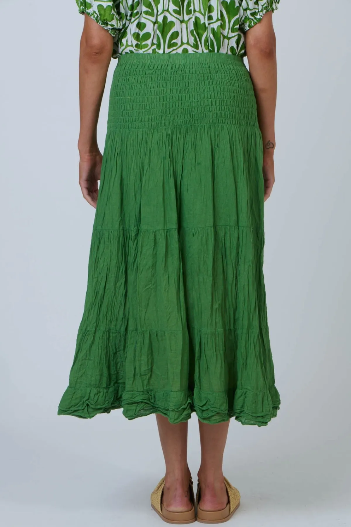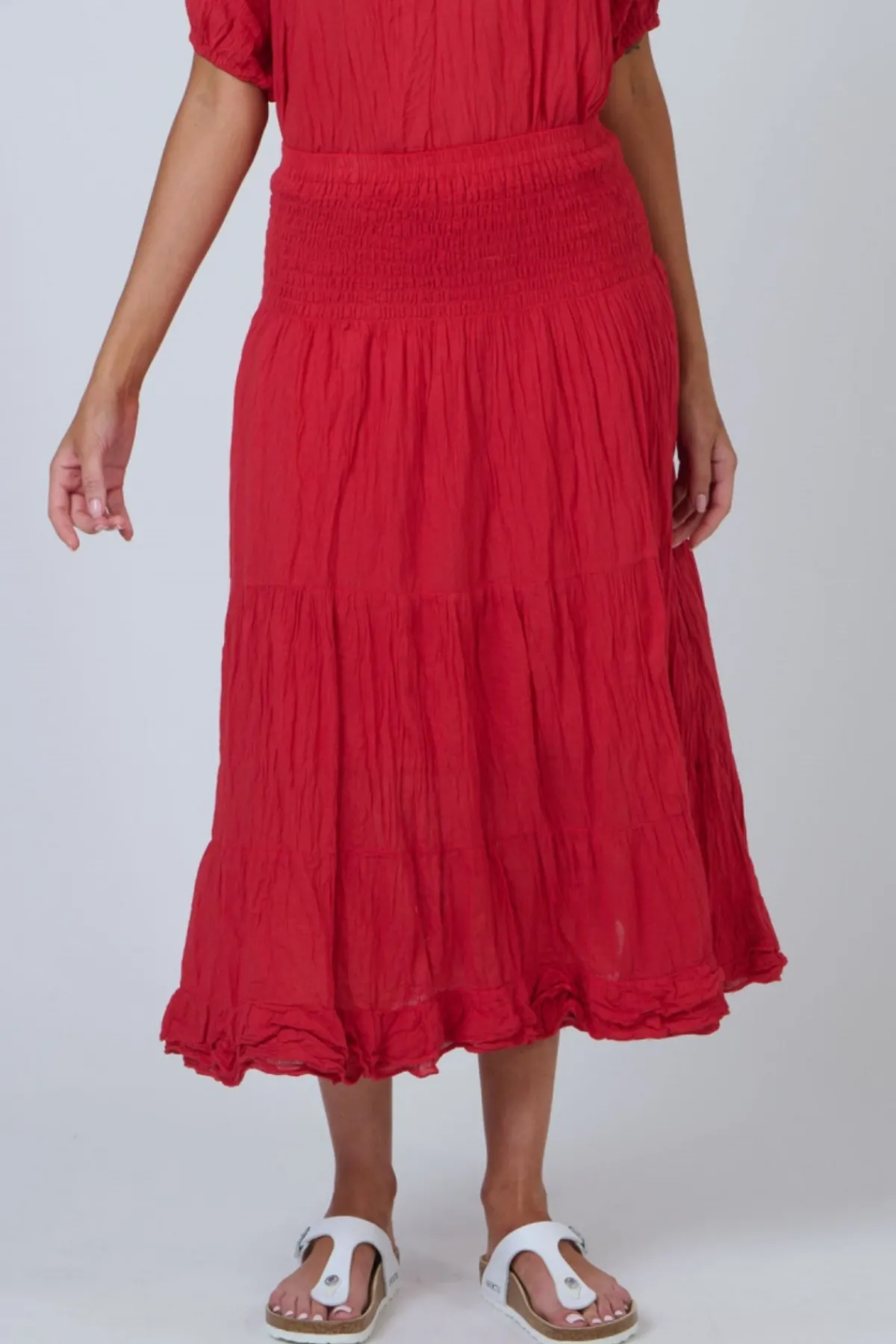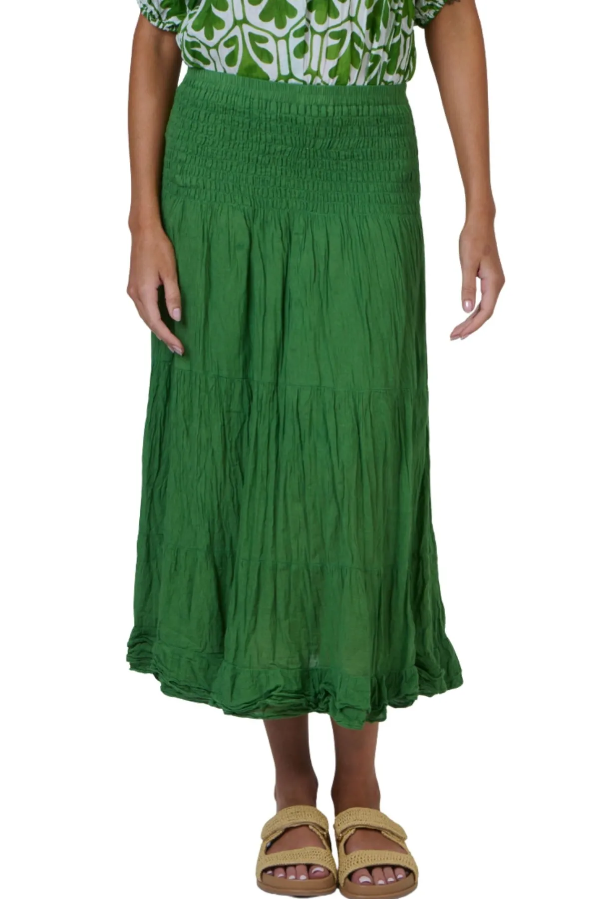 Indulge in the luxury of the Cotton Skirt from Namastai. Made from premium, crinkle cotton, this fun summer skirt is designed with tiered layers for a sophisticated touch. Experience the cool and breezy comfort while staying stylish this season.