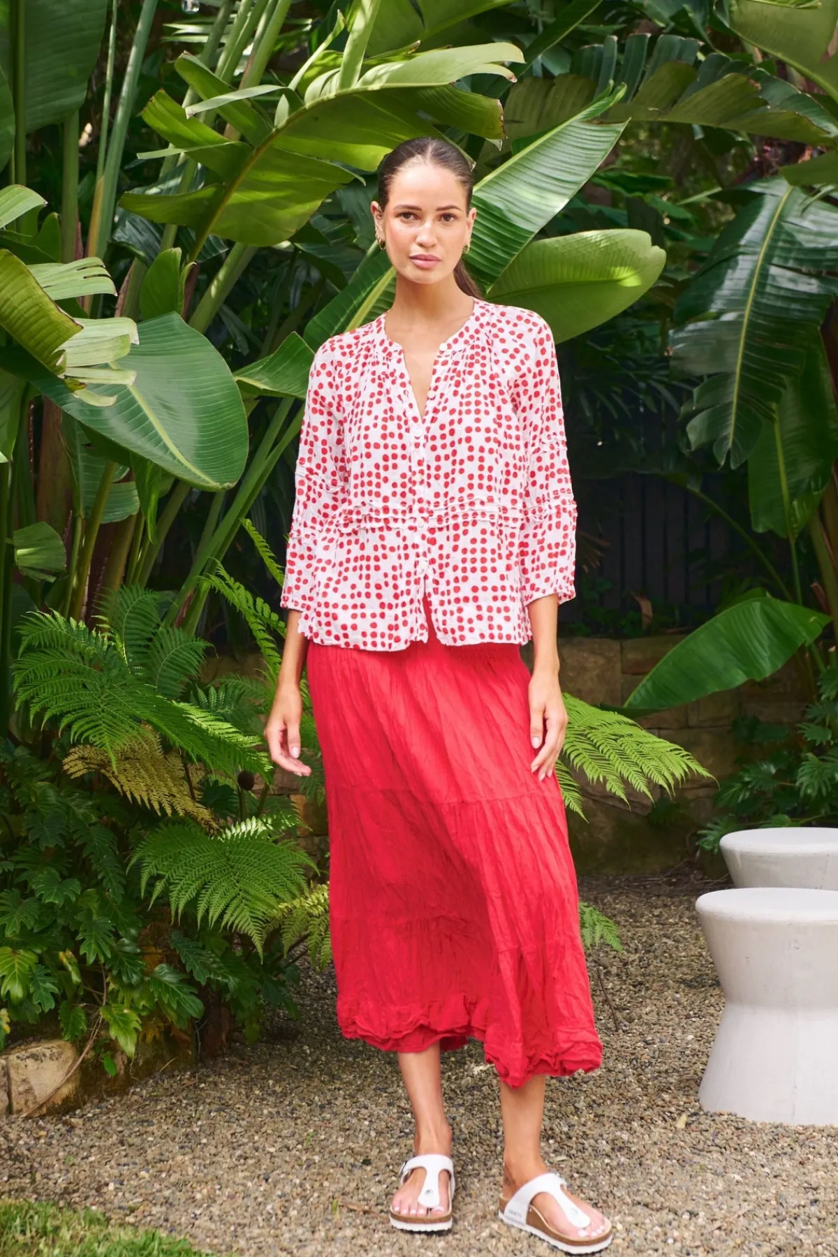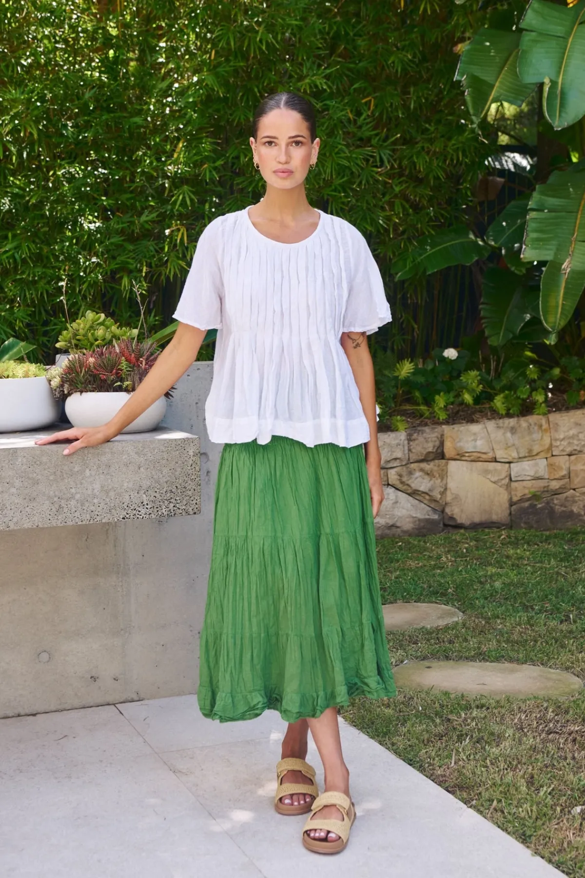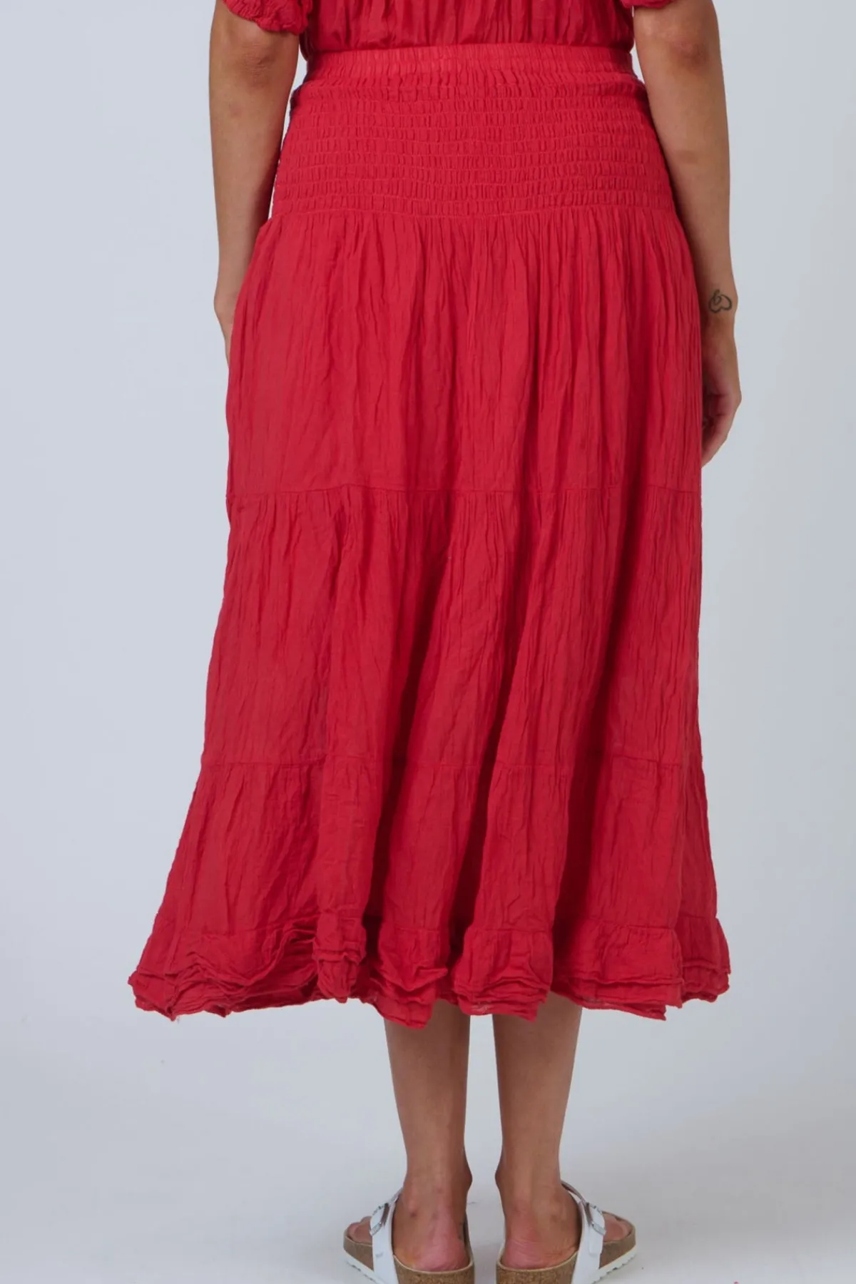 Indulge in the luxury of the Cotton Skirt from Namastai. Made from premium, crinkle cotton, this fun summer skirt is designed with tiered layers for a sophisticated touch. Experience the cool and breezy comfort while staying stylish this season.