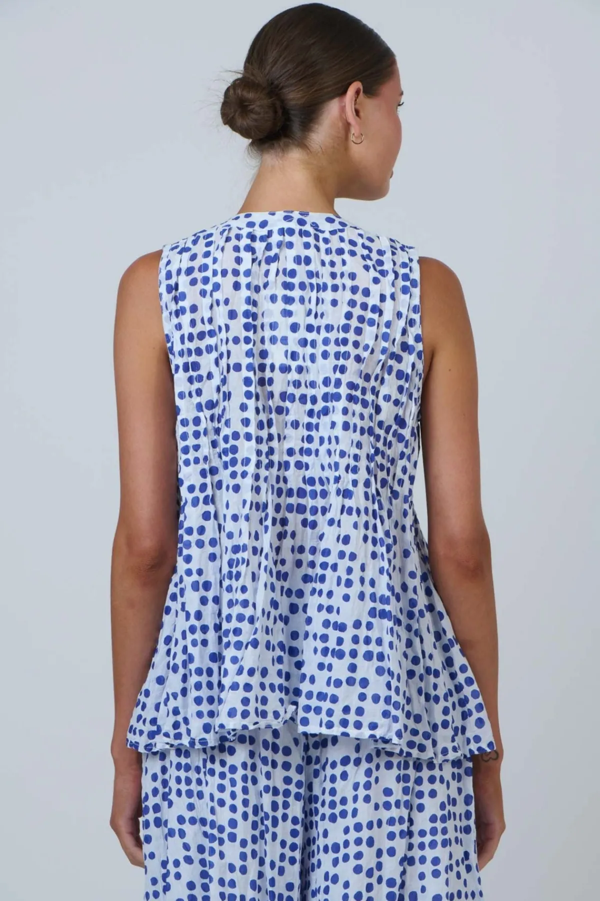 The Button Front Top adds artisanal texture to your everyday wardrobe with its distinctive vertical pleating and flowing silhouette. This sleeveless blouse features a partial button placket and a subtly notched neckline for a feminine touch. Crafted from lightweight 100% crinkle cotton, it offers an airy feel, making it perfect for effortless layering or standalone sophistication.