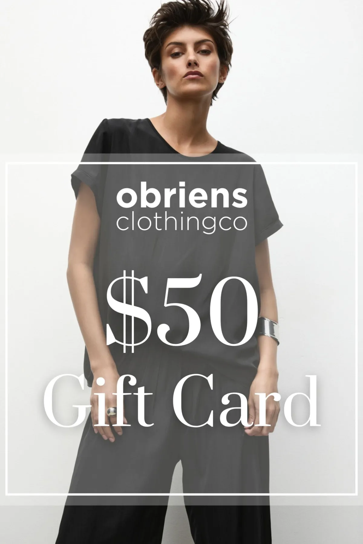 Give the perfect gift and let your loved one spoil herself. Send an O’Brien’s Clothing Co Gift Card to her inbox!