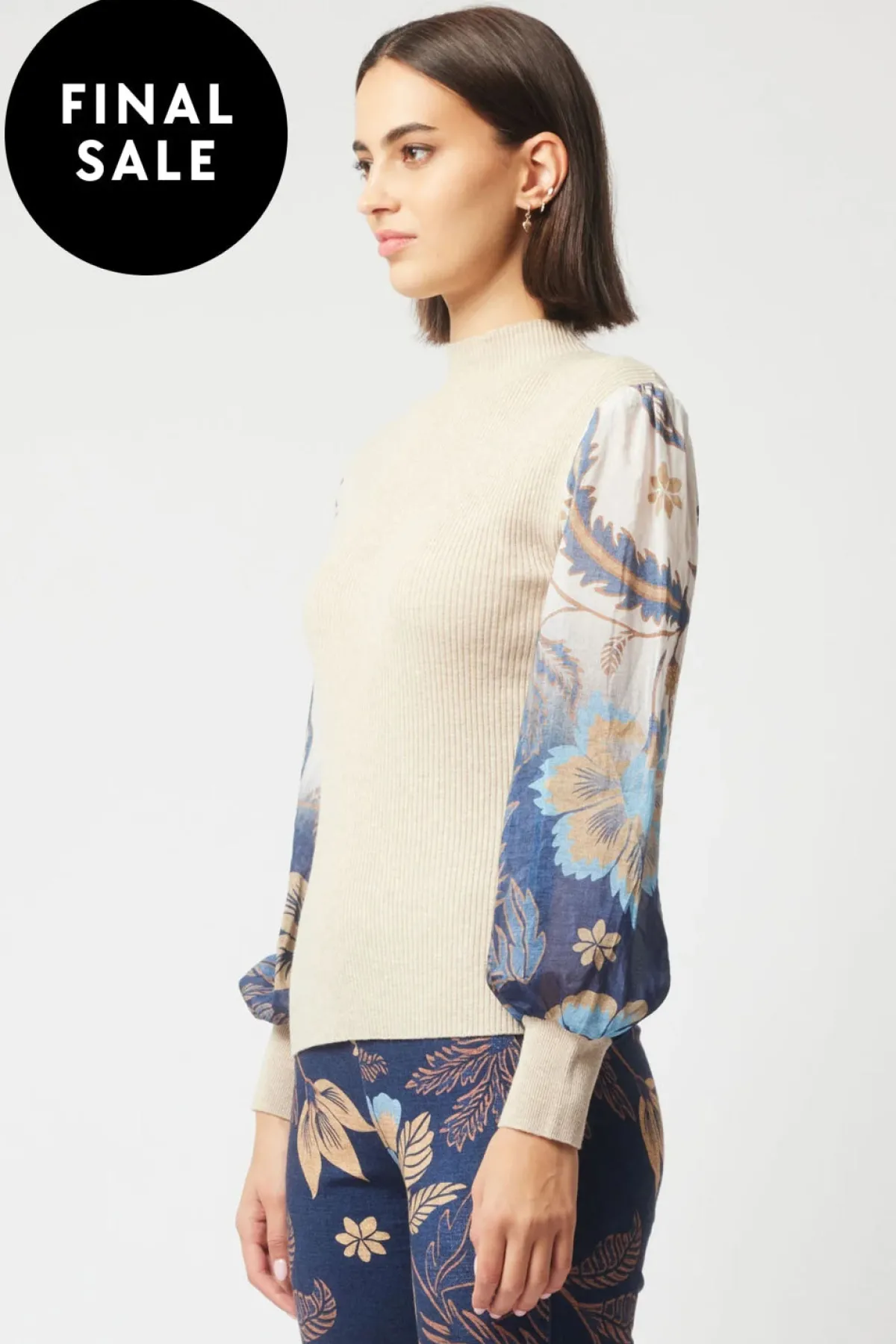 - soft blouson sleeves into ribbed cuff