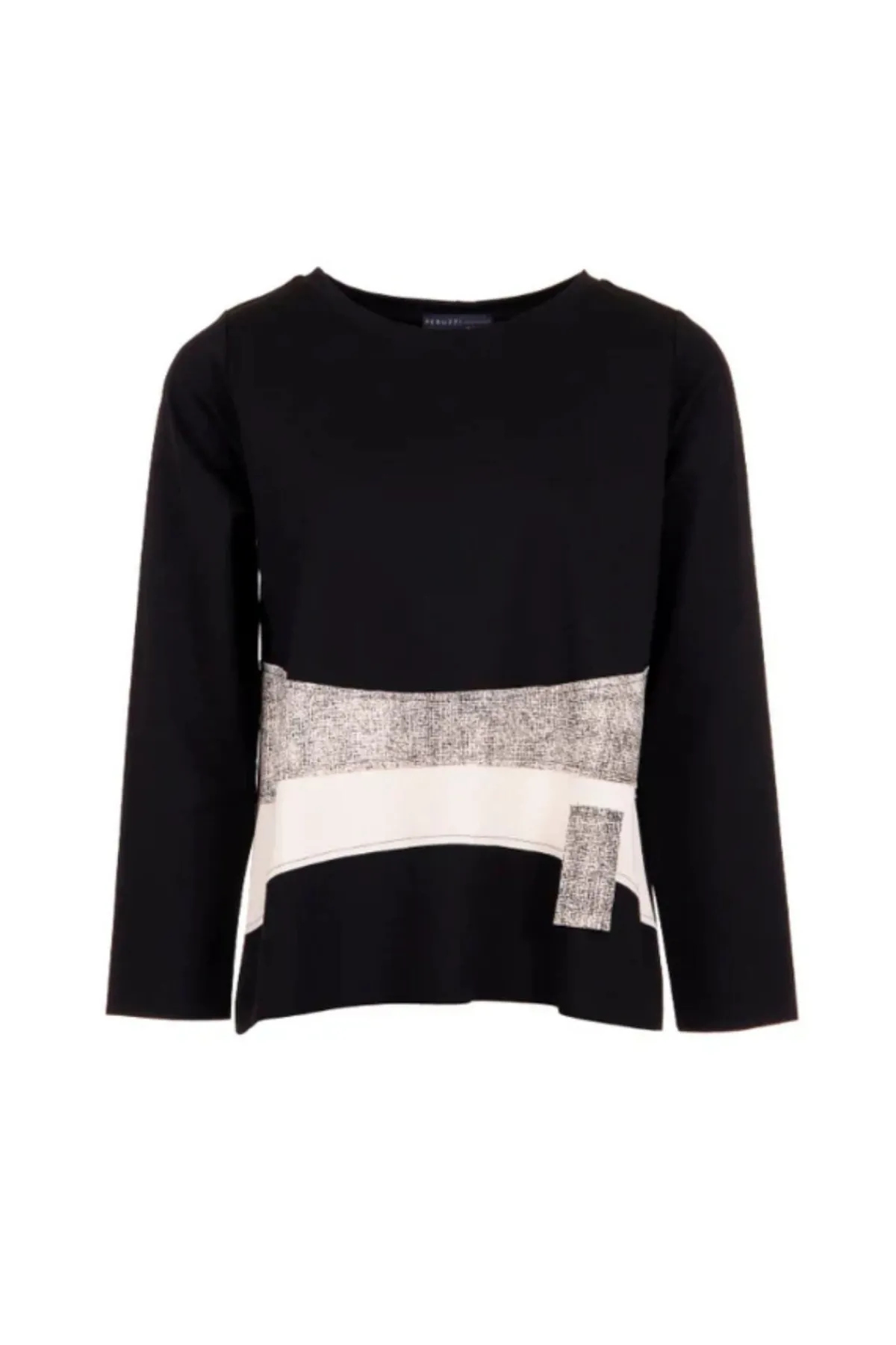 PERUZZI Tops-RAISED APPLIQUE TOP BLACK
