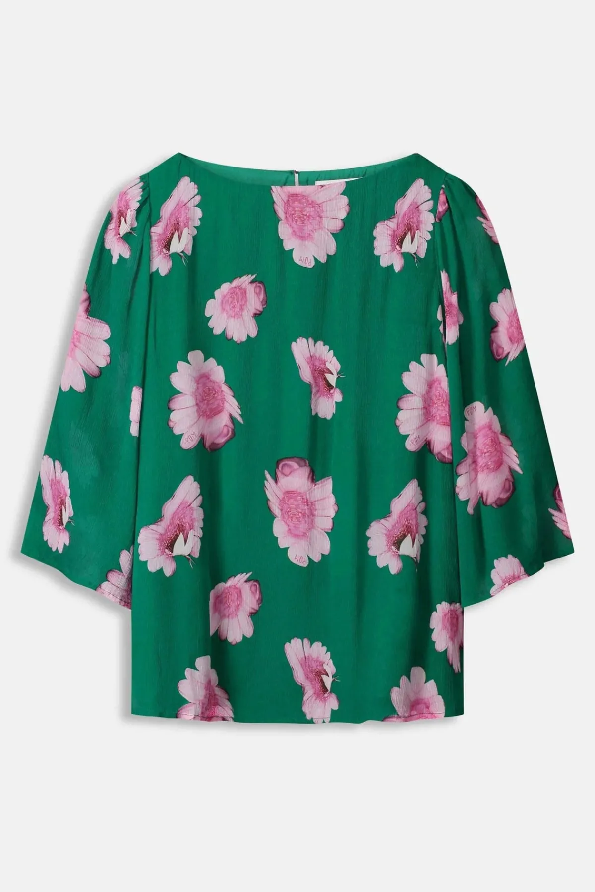 Indulge in the luxurious florals of this green blouse, a must-have in your wardrobe. Its chic design is elevated with butterfly sleeves and it’s crafted from 100% woven viscose in a delicate crinkle texture.