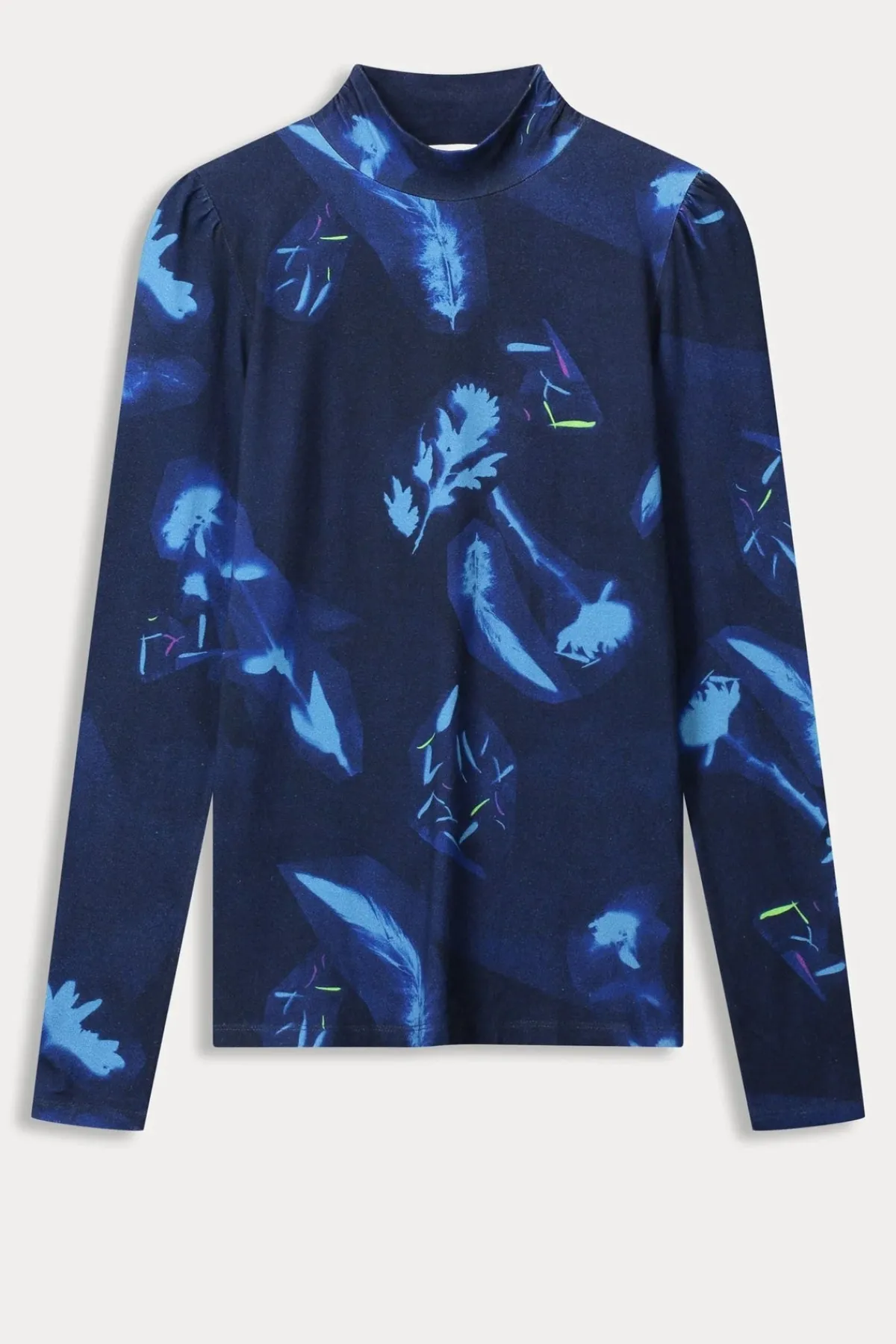 POM Tops|Winter Style-FLORAL TURTLE NECK TOP BLUE