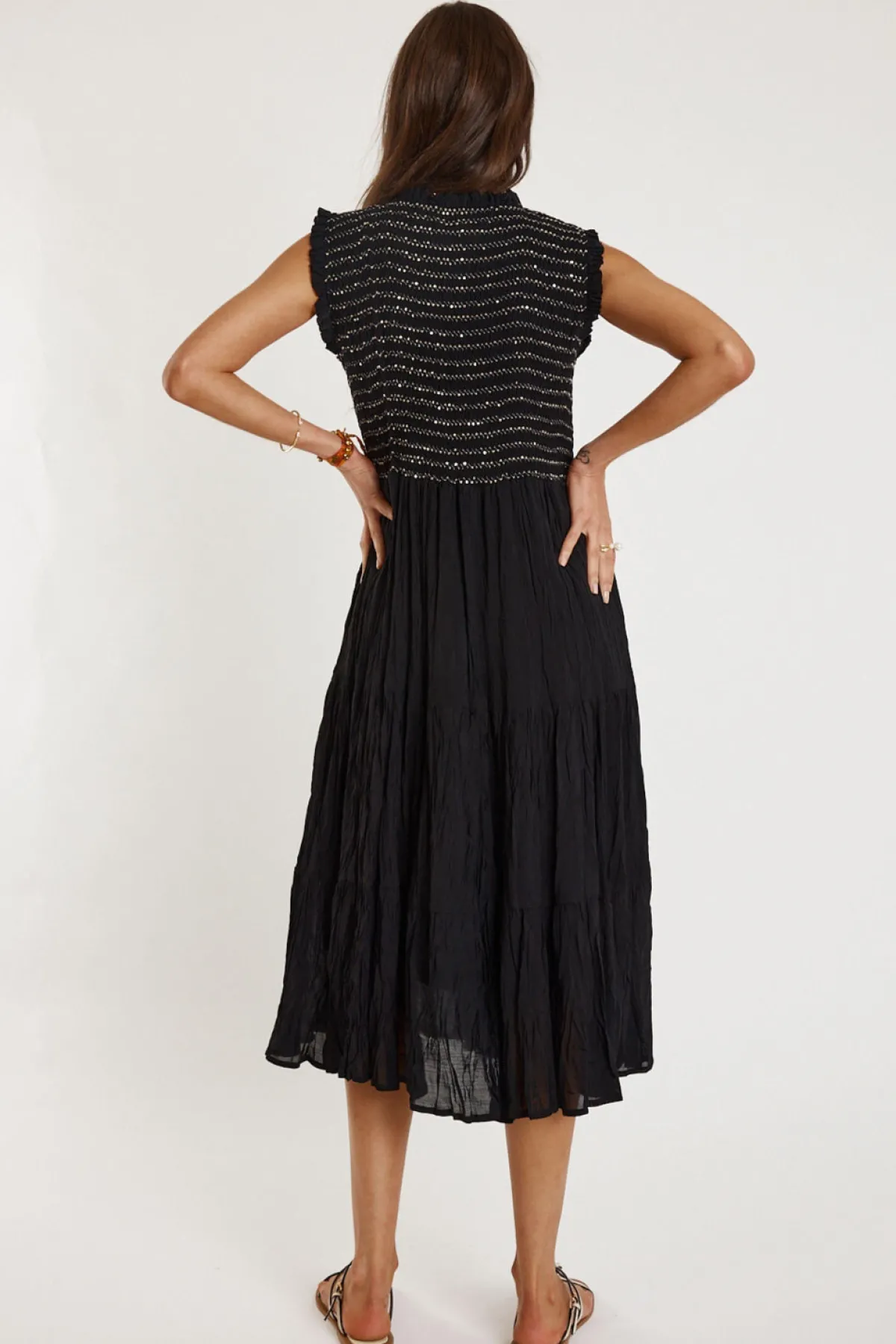 The Jolie Maxi is your go-to for effortless elegance. This stunning black maxi features a graceful tiered skirt that moves beautifully, keeping you cool and comfortable through warm summer evenings. Dress it up for resort dinners or down for casual days—versatility that works as hard as you do. Perfect for those moments when you want to look polished without trying too hard.