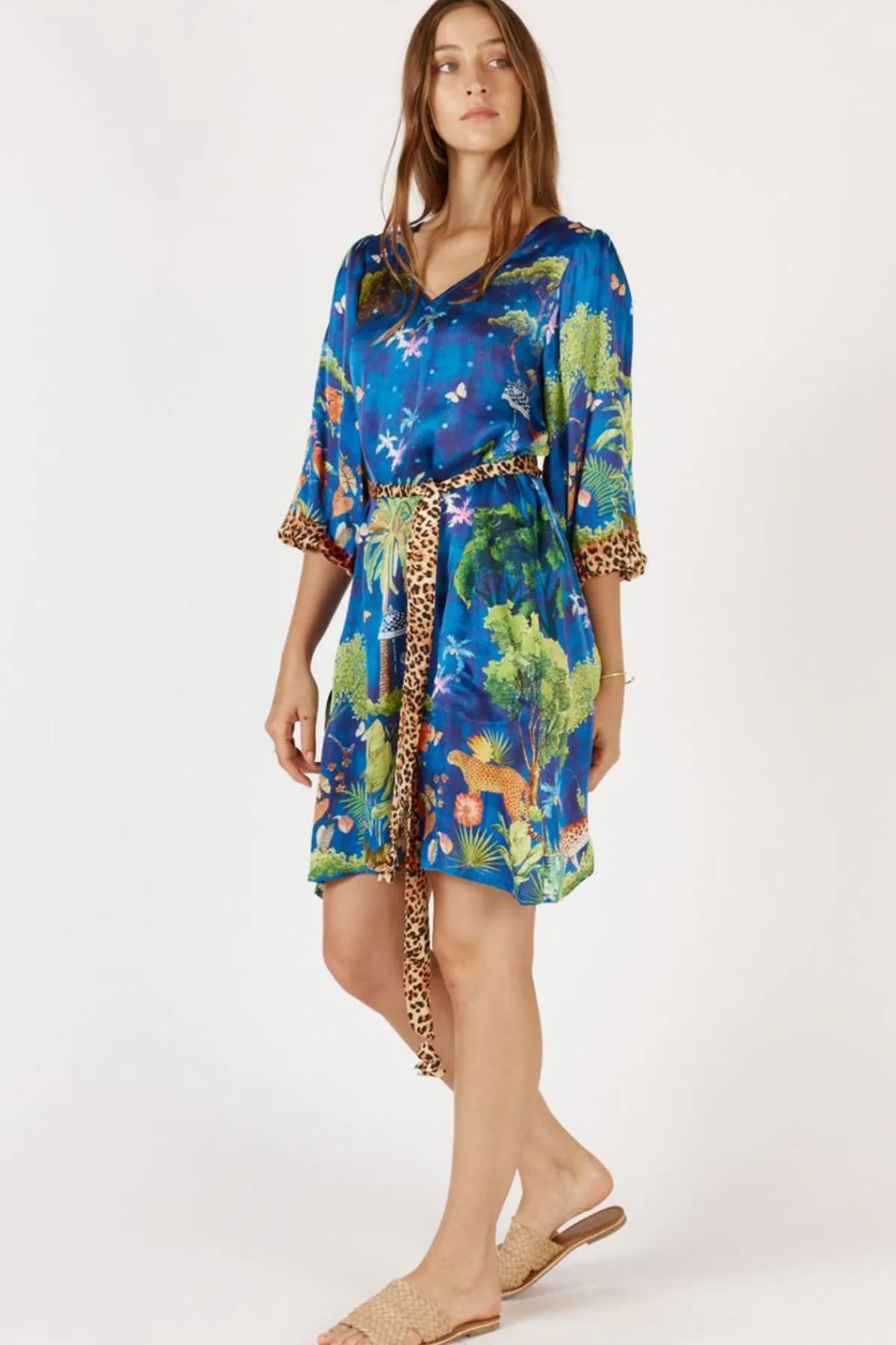 The Rubyyaya Mataram Dress is crafted from 100% viscose satin, offering a soft drape and luxurious feel. Designed with an A-line silhouette, flattering V-neckline, and puff sleeves with elasticated cuffs, this dress balances comfort and elegance. A separate self-tie belt allows you to define your waist, while side seam pockets add functionality. Falling to the knee with a generous fit, it’s the perfect everyday or occasion piece. Designed in Australia and made in India, this timeless dress embodies effortless style.