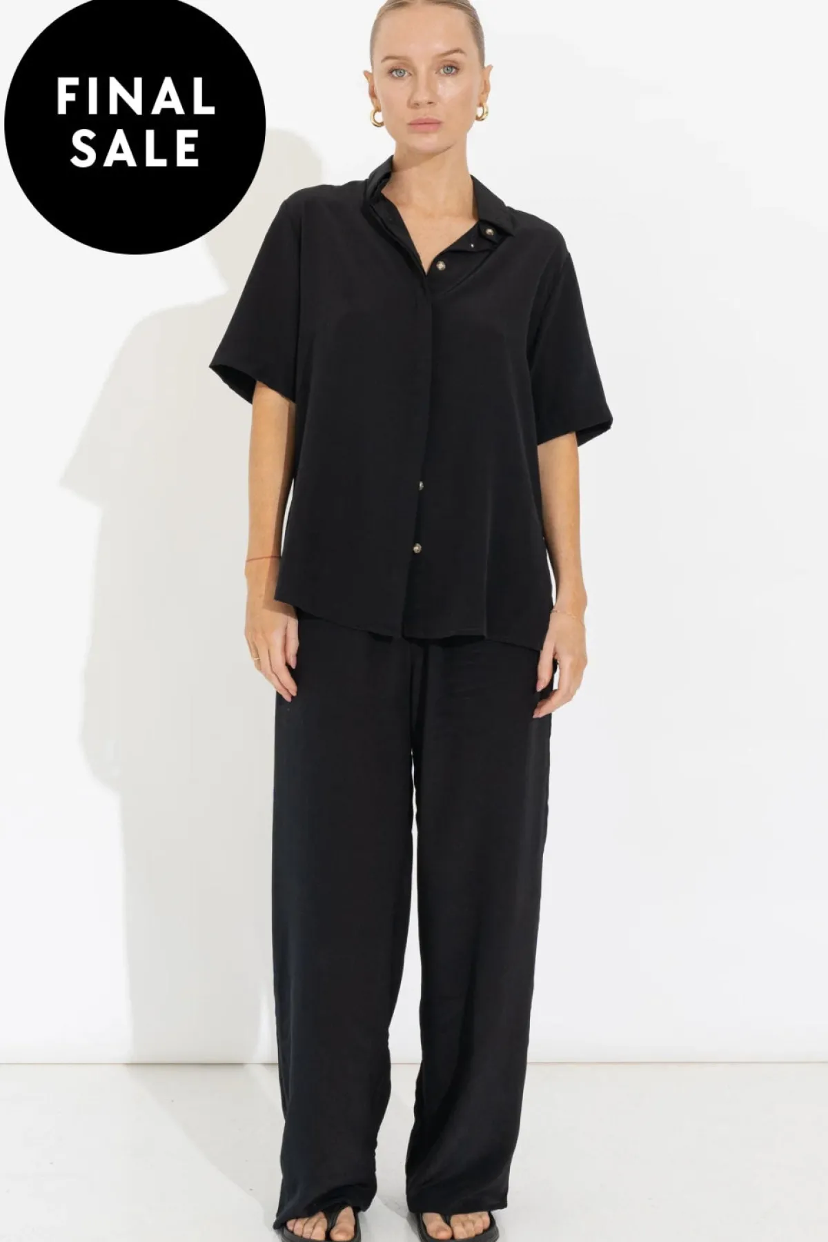 This relaxed leg pant has a drawstring waist and side pockets. Crafted in silk crepe for an elevated but effortless look.