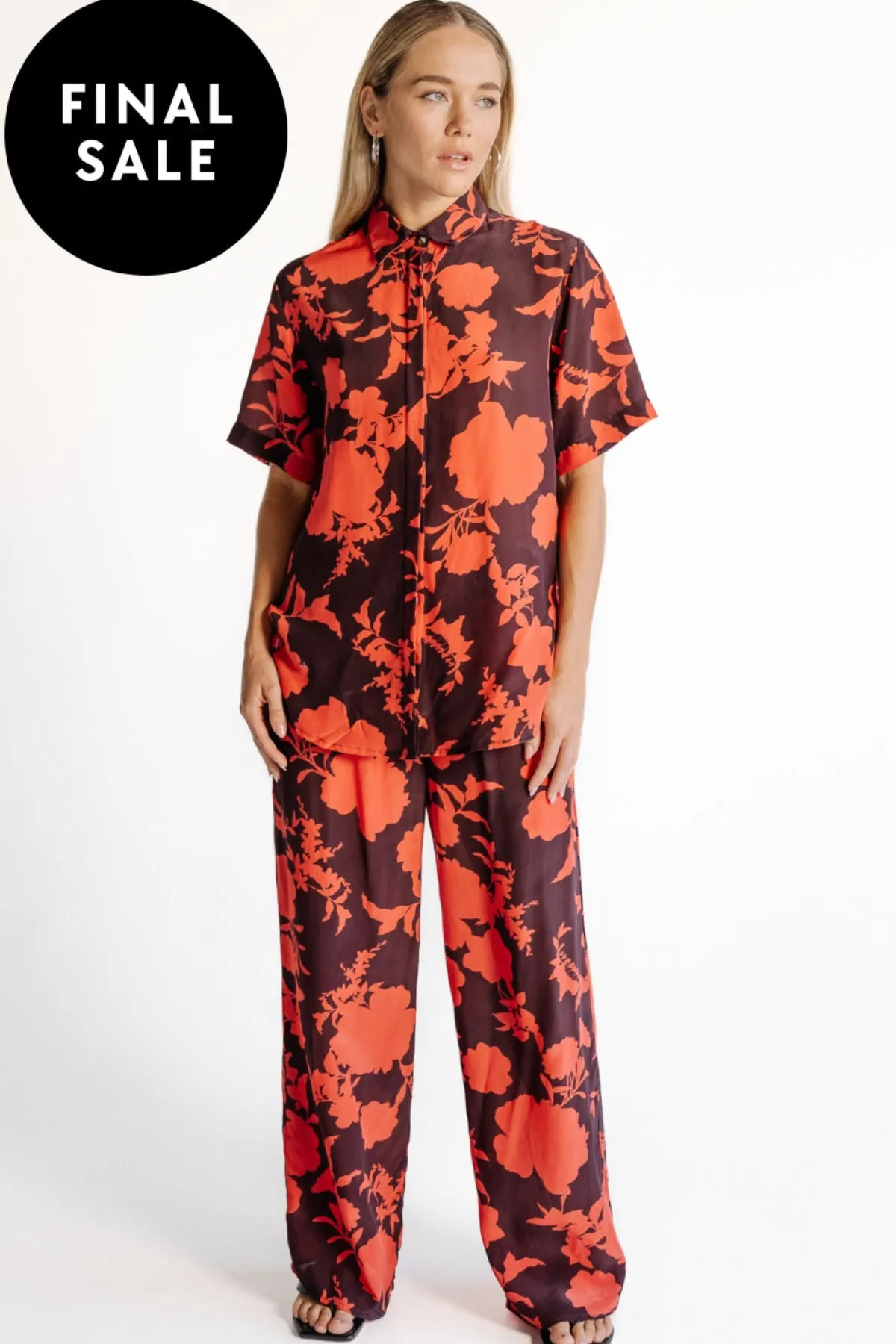 A relaxed, short sleeve shirtcrafted from matt silk crepe in the exclusiveCamellia print in coral and aubergine for an elevated yet effortless look. A relaxed yet slimming silhouette with small side splits and a longer back hem. Pair with the Portofino Pant for a complete holiday ensemble.