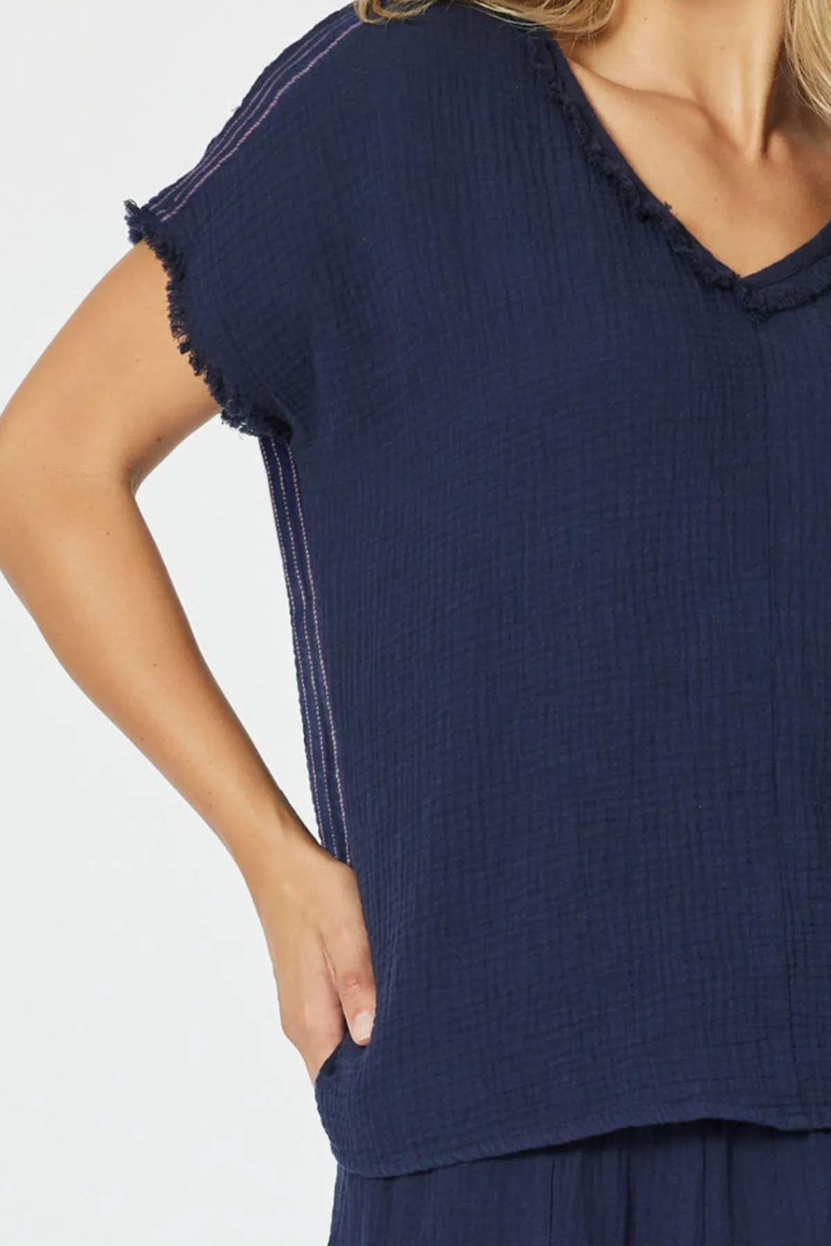 THREADZ Tops|Travel Essentials-HALEY BYRON TOP NAVY