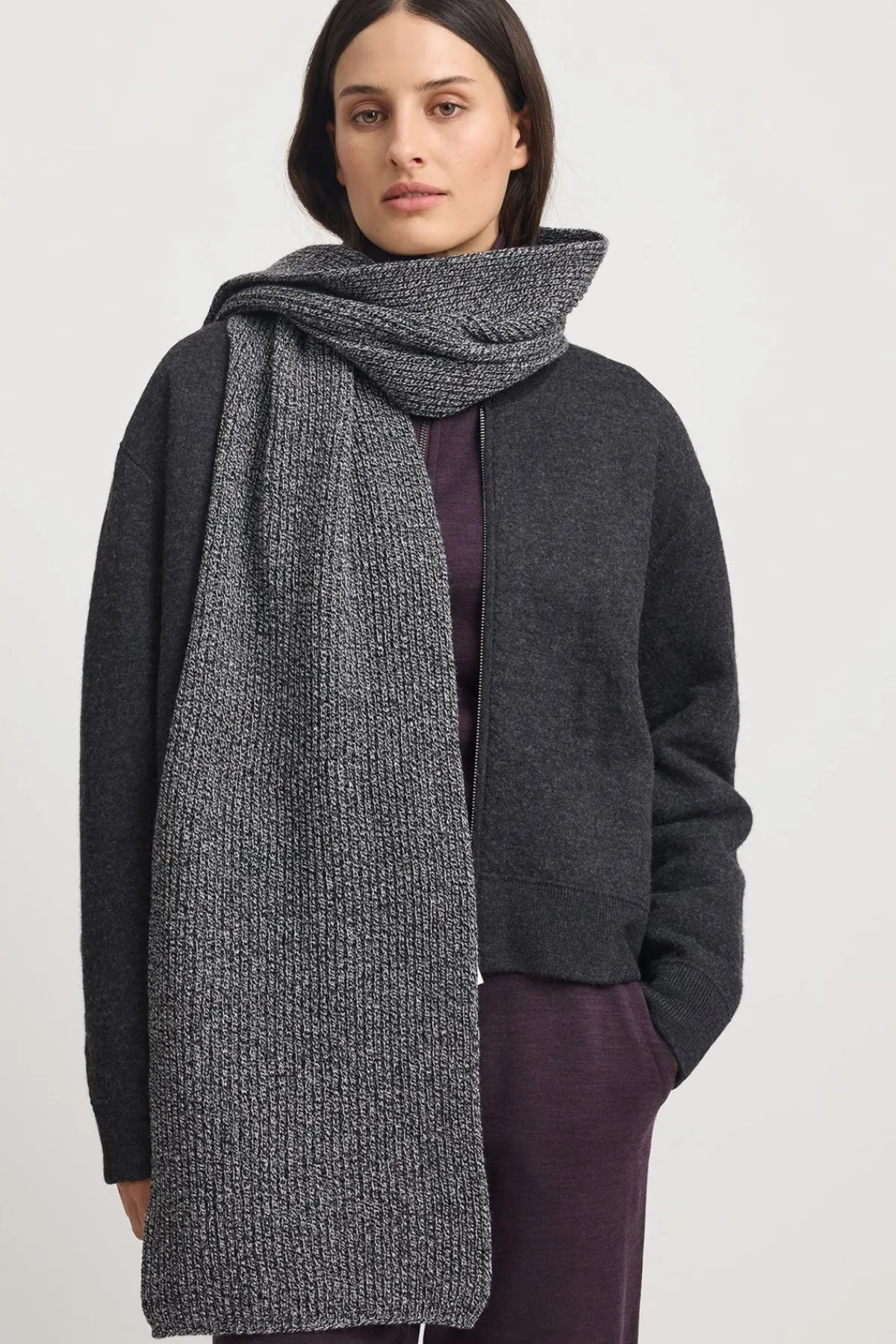 Crafted in soft merino lambswool, the chunky rib scarf is a utilitarian staple with a lofty, stylish appeal.