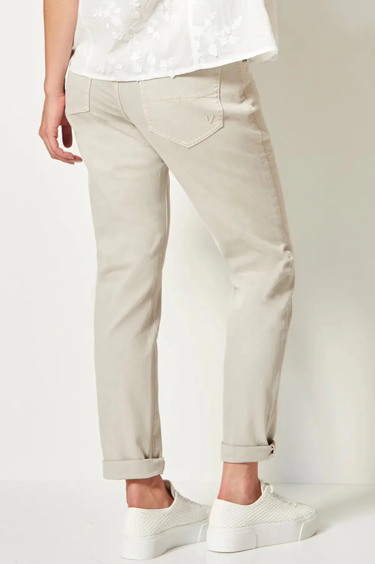 Our top-selling Boyfriend jeans contrast stitching detail on side of the leg and stripe tape binding on the inside leg for more interest when rolling hem. The mid-rise Paris Jean is ankle length.
