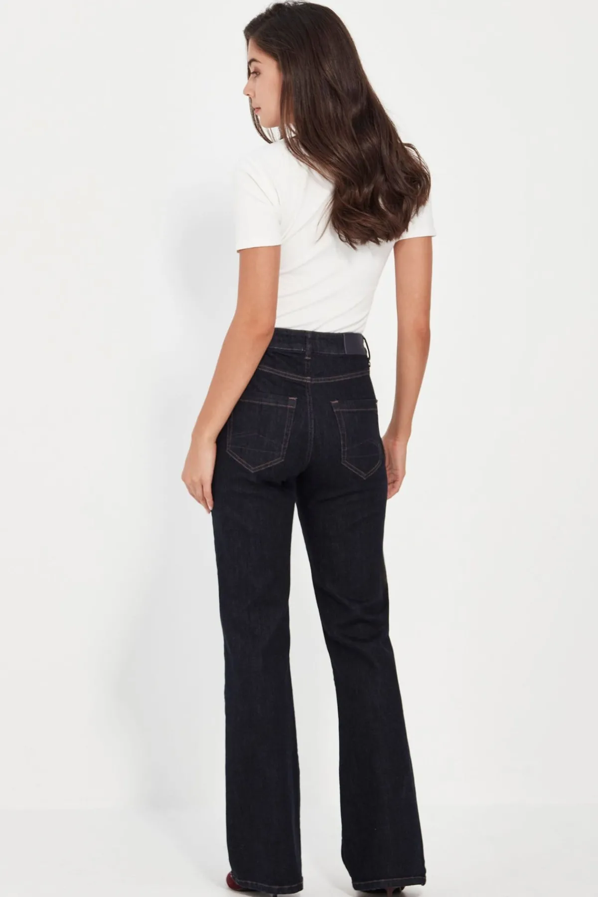 Made from high quality stretch denim, this classic 5 pocket jean provides both comfort and style. The bootcut design works for every body shape, making these the perfect choice for all-day wear. Upgrade your wardrobe with these versatile and timeless dark wash jeans. 5 Pocket stretch dark wash denim jean. Full length. Bootcut.