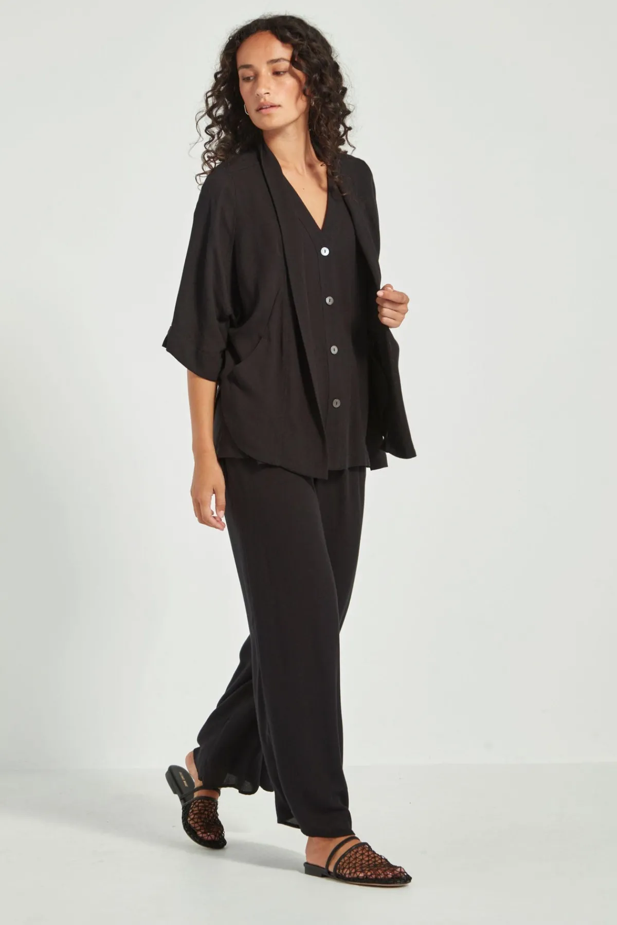 Relaxed elegance in every detail. The Cayman Pant is cut in a soft weave mesh and designed with a full-length wider leg silhouette, elasticated waistband, and slant side pockets for everyday ease. Fully lined in self-fabric for a fluid, seamless feel. Complete your look by pairing it with the coordinating Cayman Vest and Jacket for an effortlessly refined outfit.