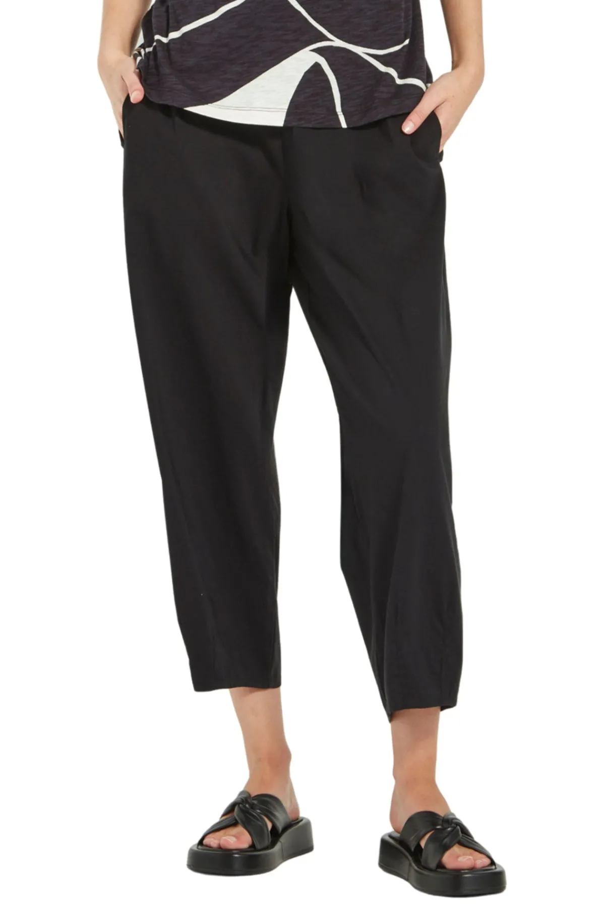 For lovers of the tapered barrel leg, the Acrobat Cove Pant offers a full-leg silhouette with the comfort of Acrobat fabric. It features an easy elasticated back waistband, flat front, slant pockets, and a 7/8 length. Modern styling is enhanced by dart details that taper the hem for a polished finish.