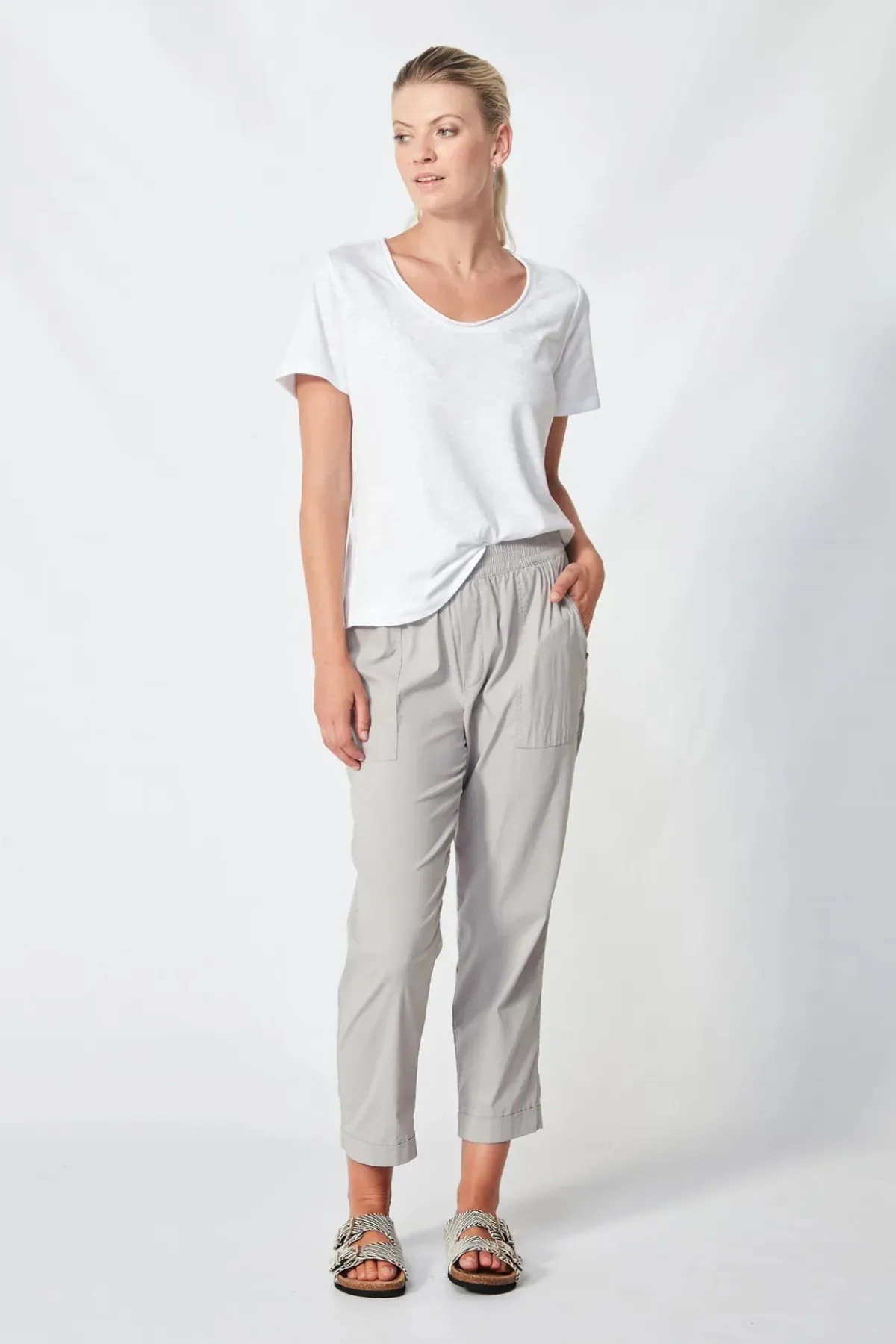 The Acrobat Essex 7/8 pant with relaxed leg and elasticated waist. The Essex pant features deep front pockets and cuff detail. Made in our exclusive European, lightweight stretch cotton Acrobat fabric for comfort, breathability and easy care.